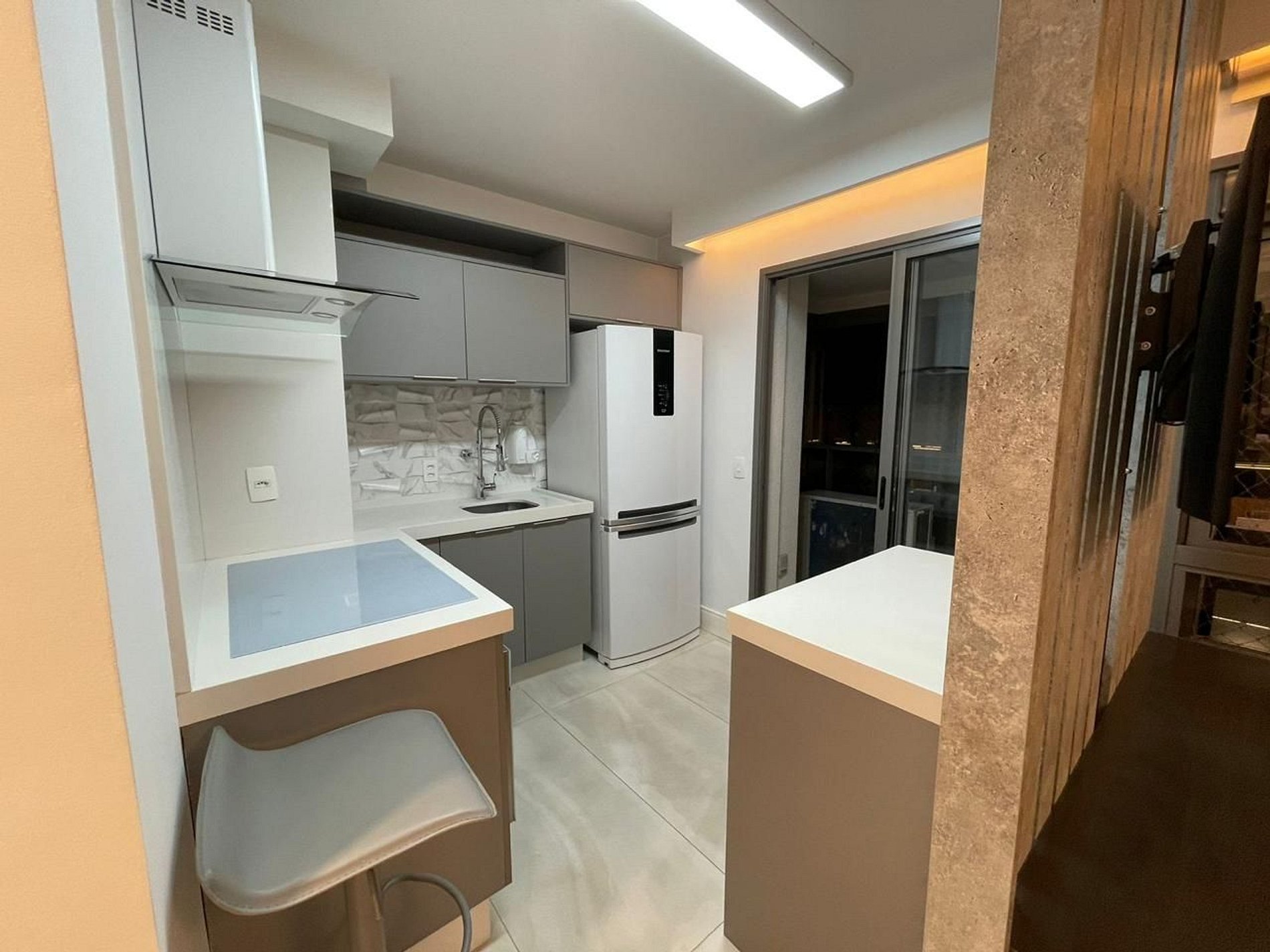 Cozinha moderna totalmente equipada, com eletrodomésticos novos e bancada prática.