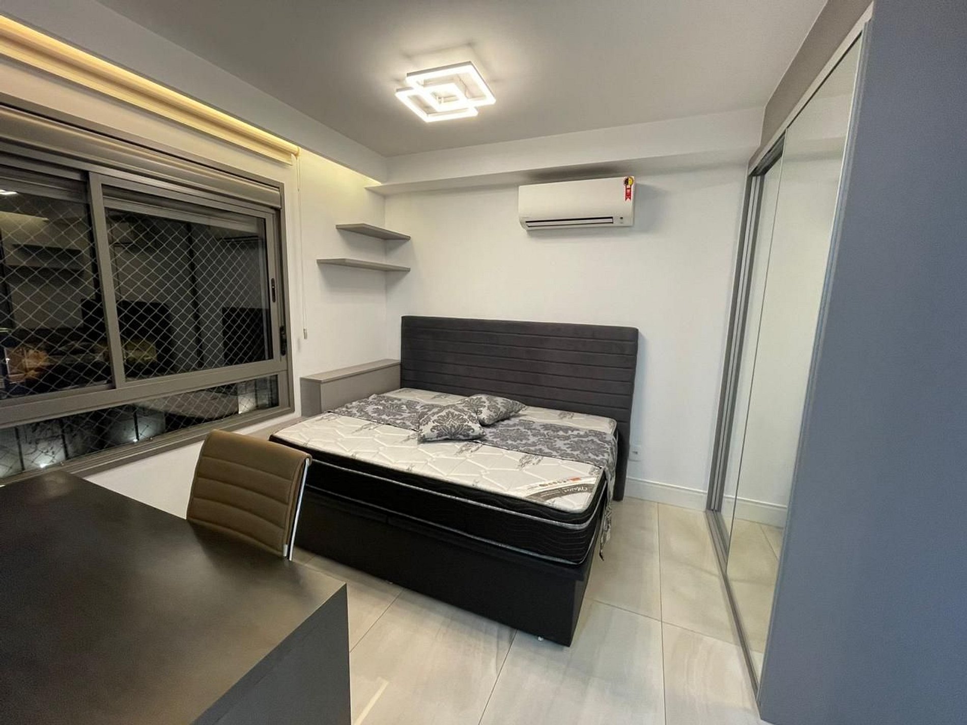 Layout inteligente, integrando quarto e sala em ambiente funcional e elegante.