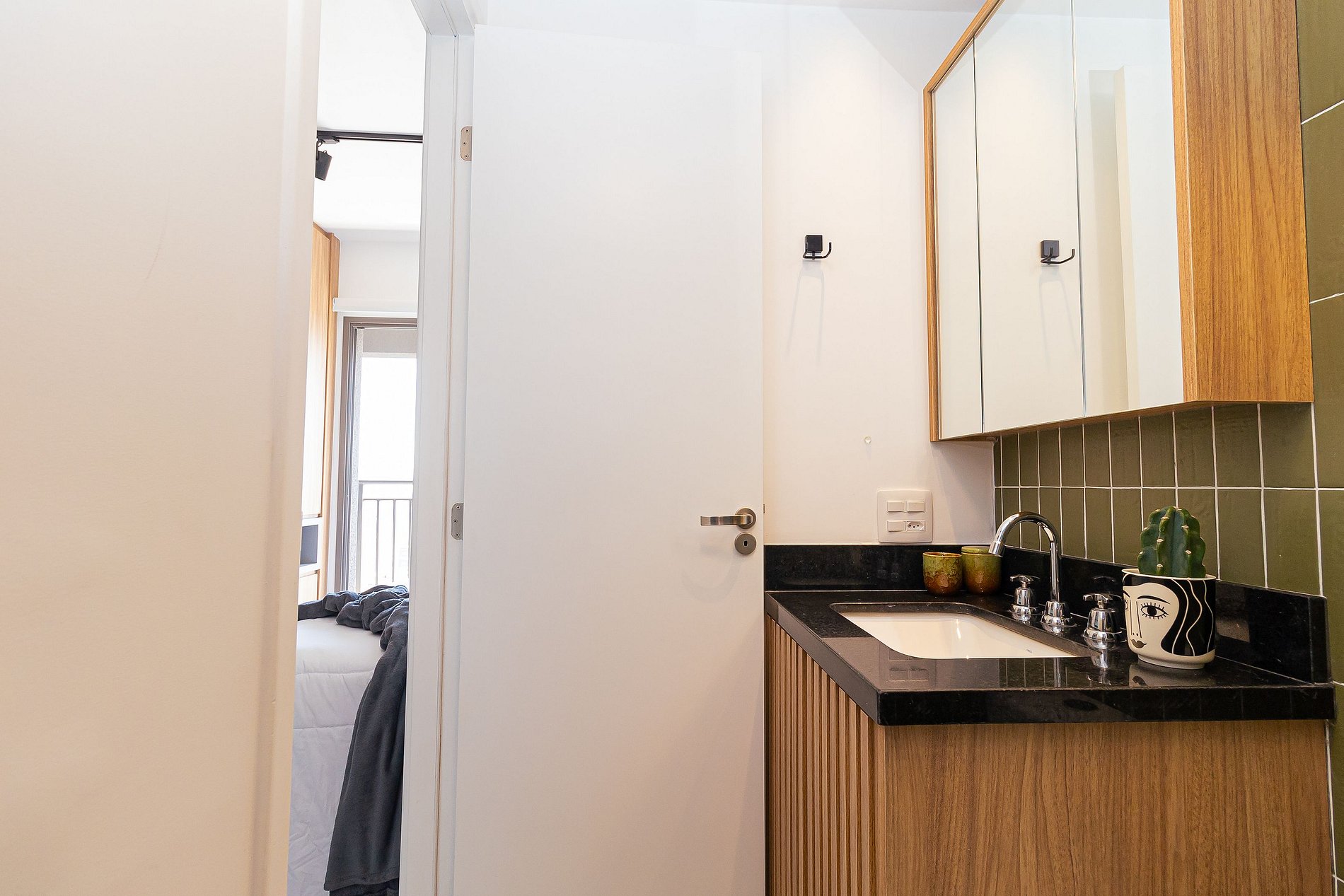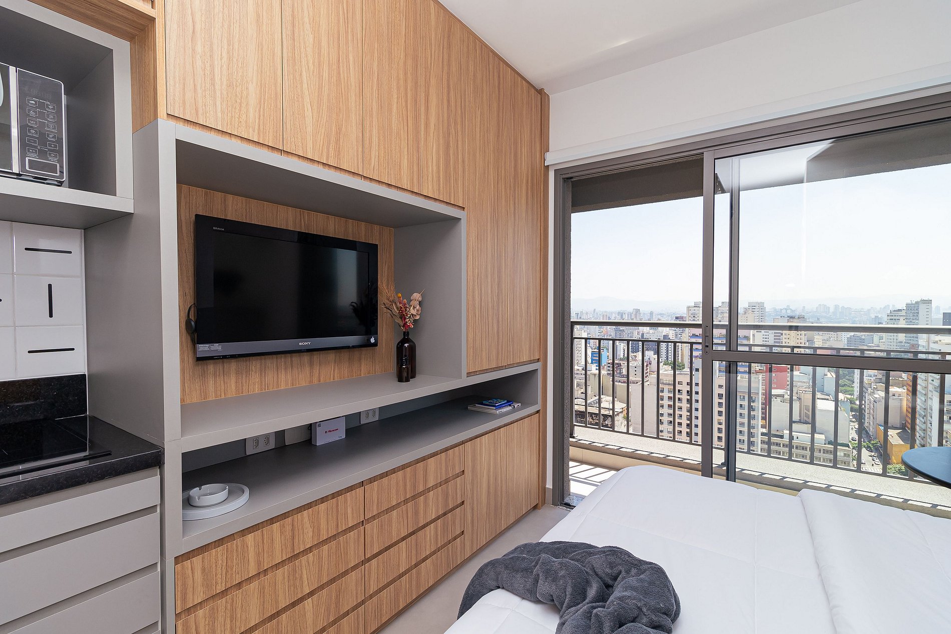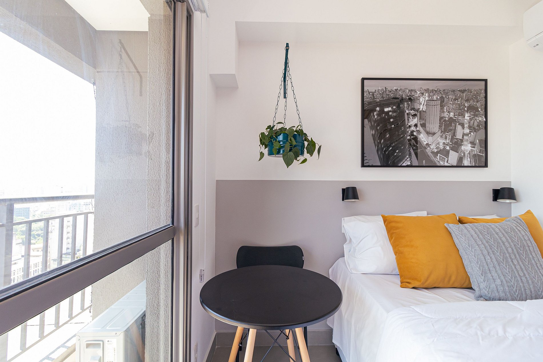 O apartamento com vista privilegiada e detalhes que fazem toda a diferença, conta com mobiliários feitos sob medida e peças complementares de decoração que deixam esse ambiente que é tela do famoso Aquário urbano, um charme, além de proporcionar todo o conforto que é preciso em uma estadia de curta temporada, na tão famosa Selva de Pedra, como é conhecida cidade de São Paulo.