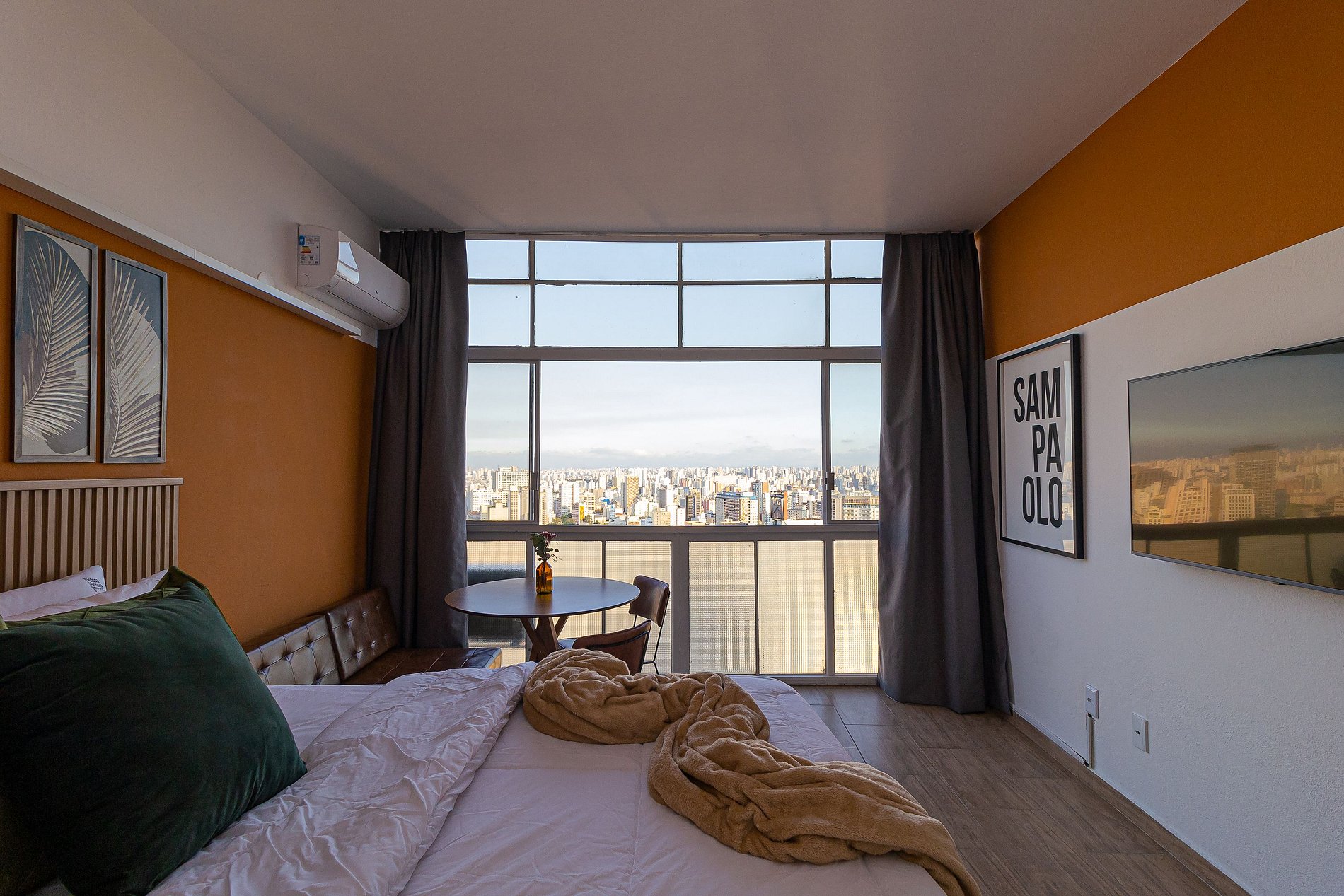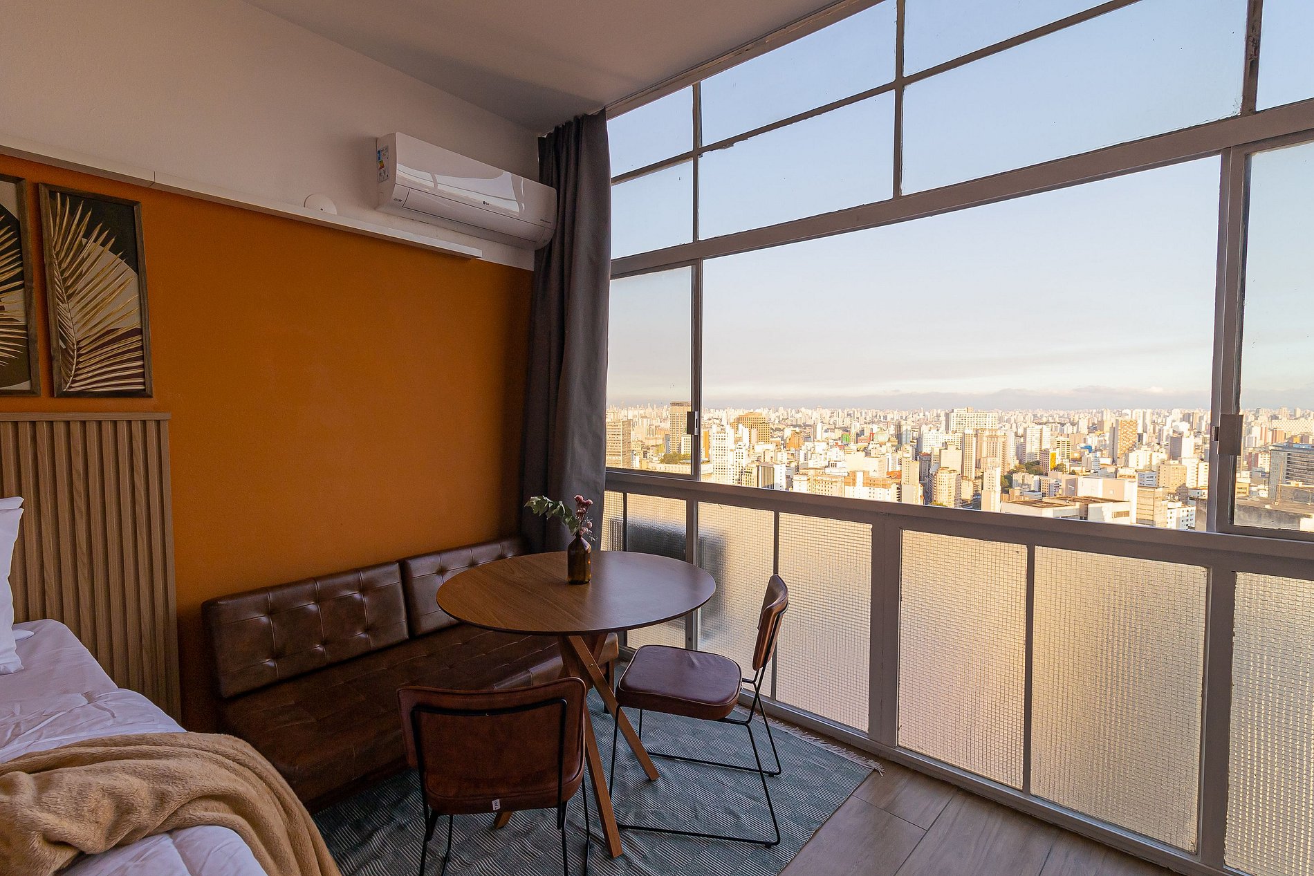 O melhor nascer do sol, do alto do 30º andar do Edifício mais icônico de São Paulo. Uma vista excepcional e um ambiente acolhedor, com tudo que é necessário pra uma estadia de curta temporada, contando com cozinha completa, banheiro, espaço pra refeições e TV.