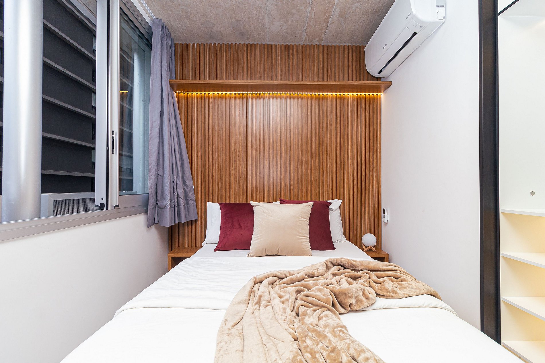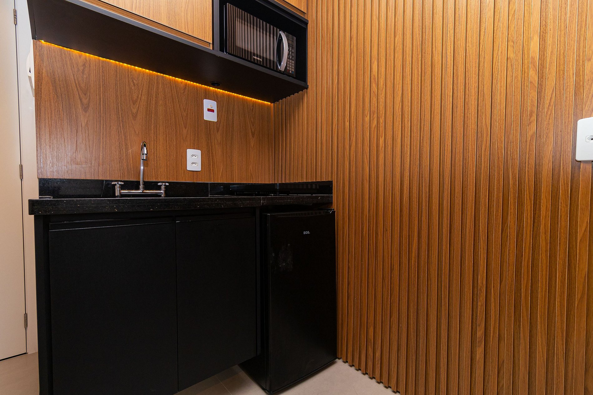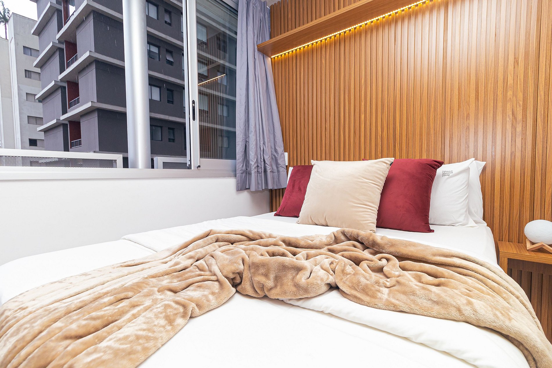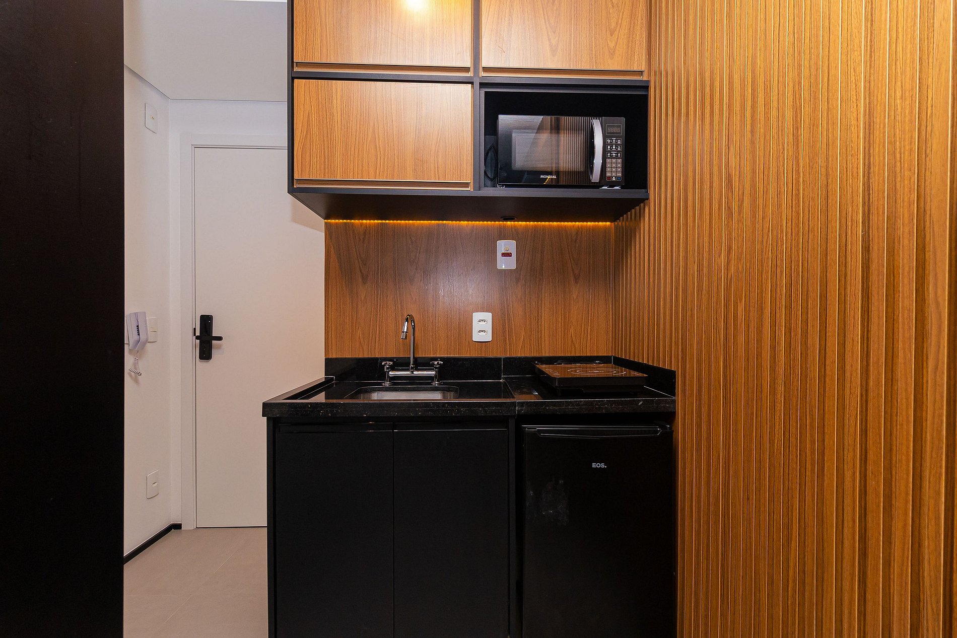 O espaço do estúdio foi totalmente otimizado e iluminado da melhor forma, possui um toque moderno e clean. Conta com televisão, wifi, fogão por indução, utensílios de cozinha, micro-ondas, ar-condicionado, cama e espelho de corpo inteiro que traz amplitude ao apartamento.