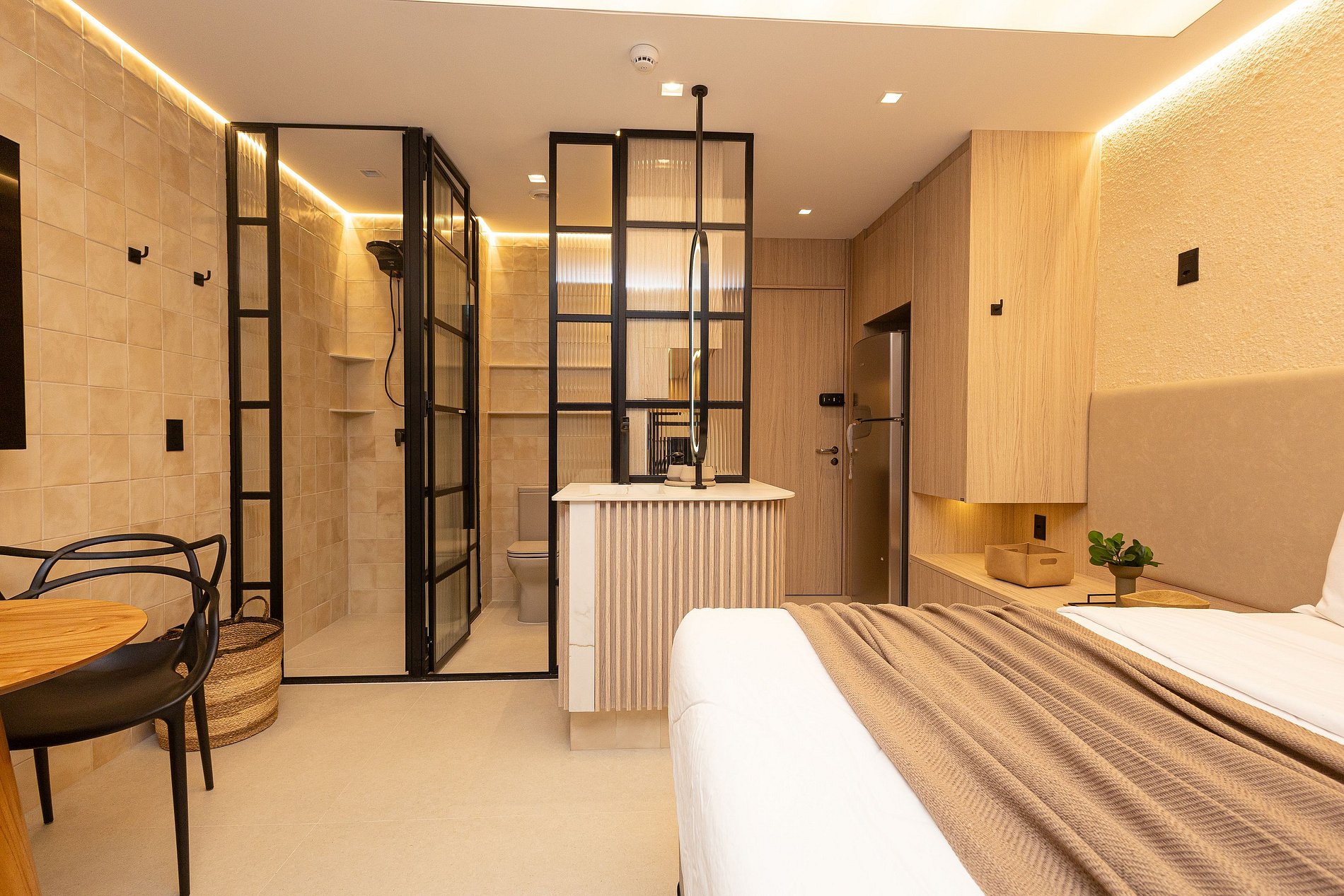 A cama confortável, a iluminação aconchegante e o layout inteligente tornam a estadia ainda mais agradável — seja para trabalho ou lazer.