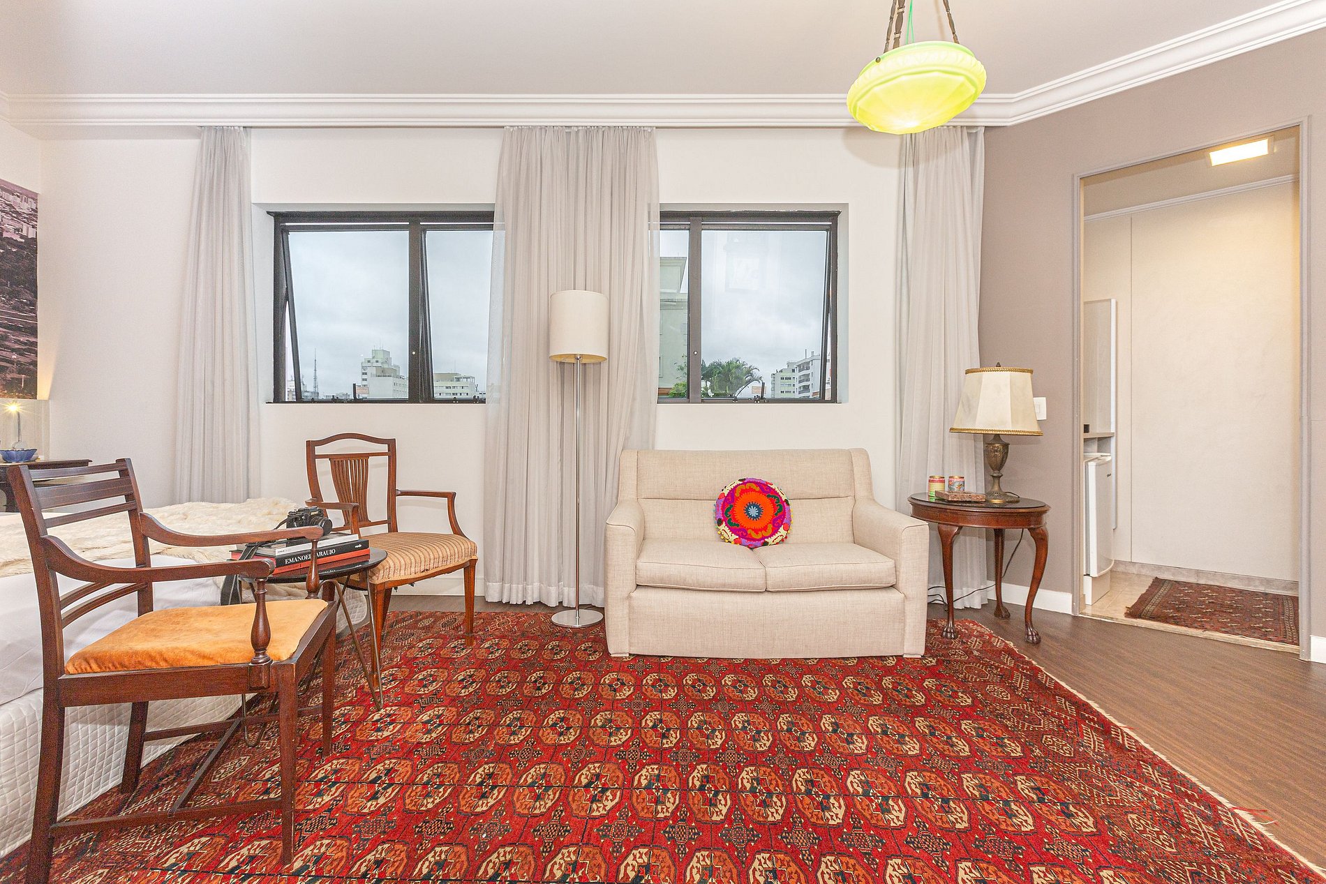 Flat decorado estilo retrô na rua da Consolação no coração dos Jardins. Com um design funcional e aconchegante, o apartamento está pronto para alugar por temporada, com mobília solta e itens de marcenaria embutida de forma otimizada. *IMPORTANTE: O PREDIO ESTA PASSANDO POR REFORMA E O ANDAR DO APARTAMENTO ESTA SENDO REFORMADO.
