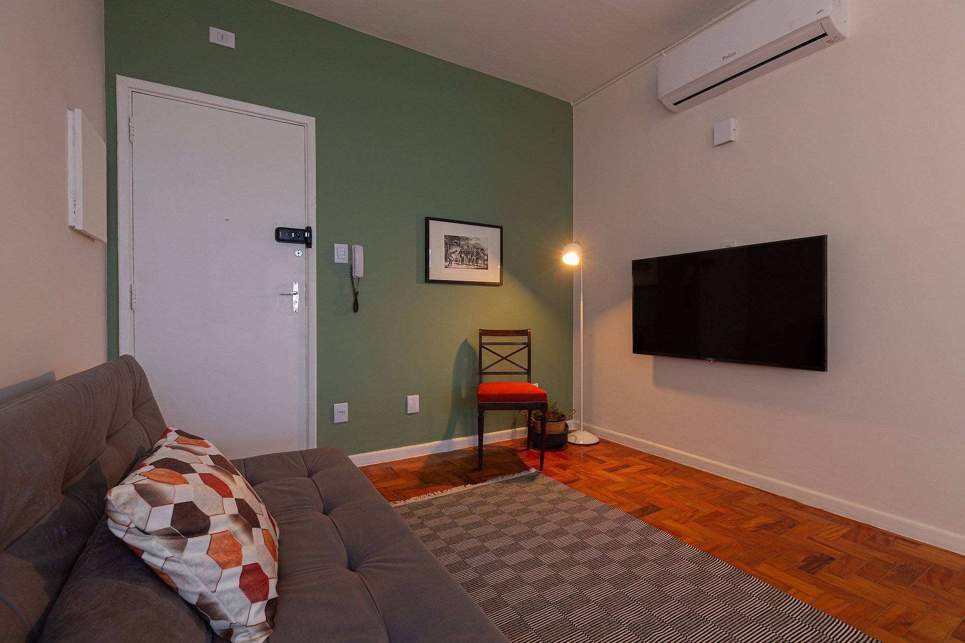 Obs: Por conta da restauração da fachada do prédio, o ar condicionado terá que ser desinstalado provisoriamente, então durante sua estadia confira com o atendimento se o apartamento já está com o ar condicionado ativo novamente.