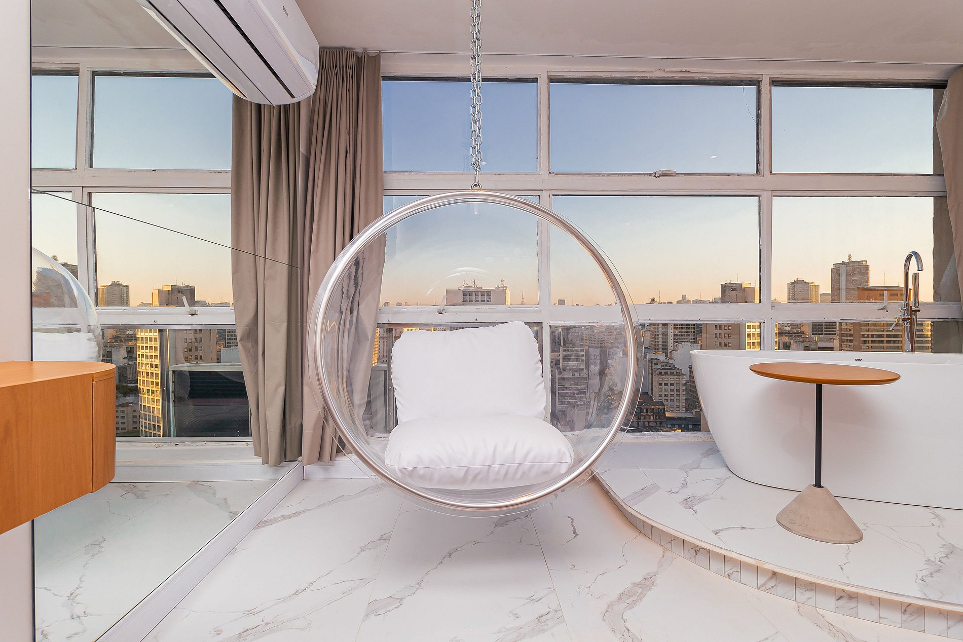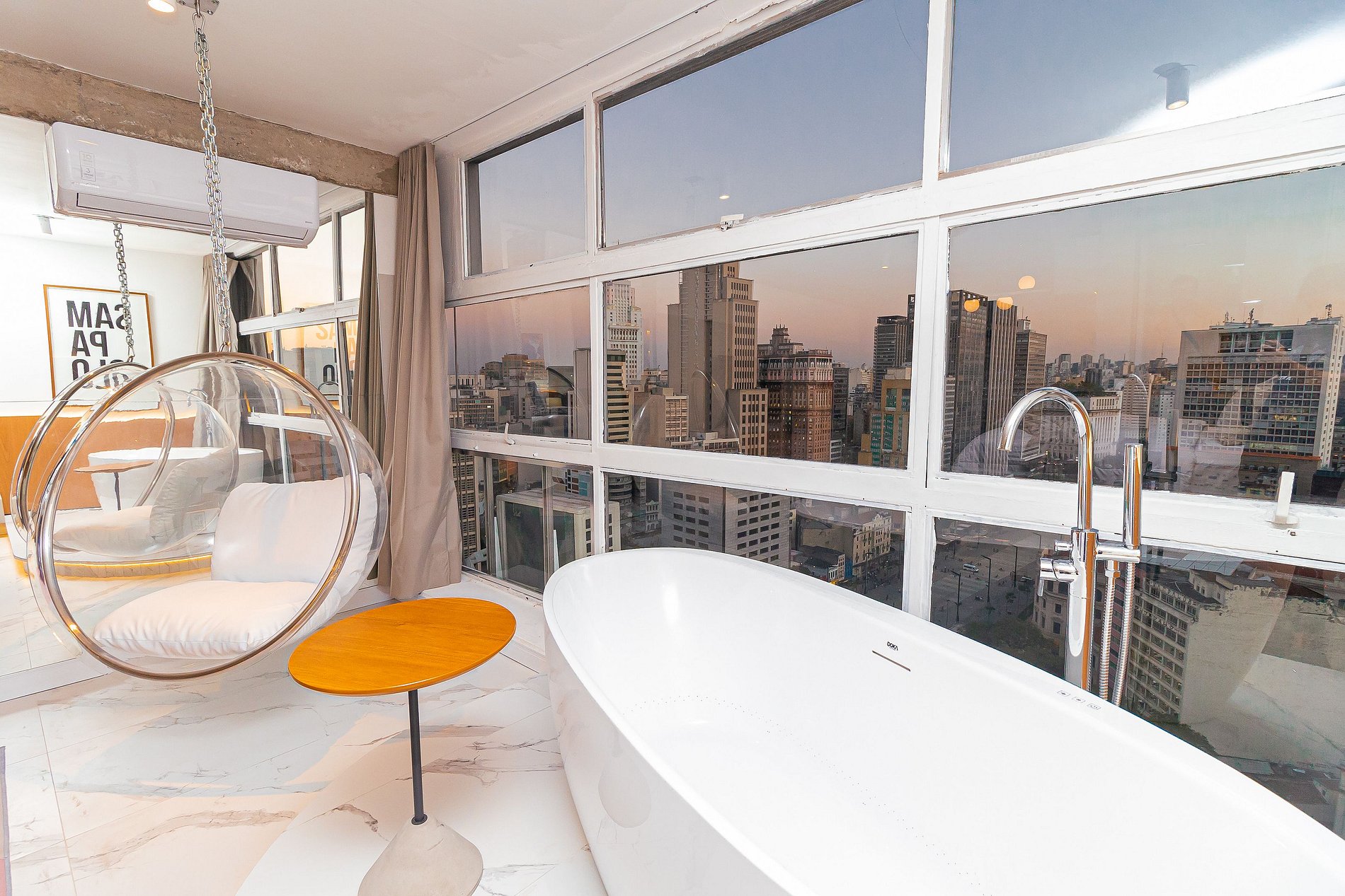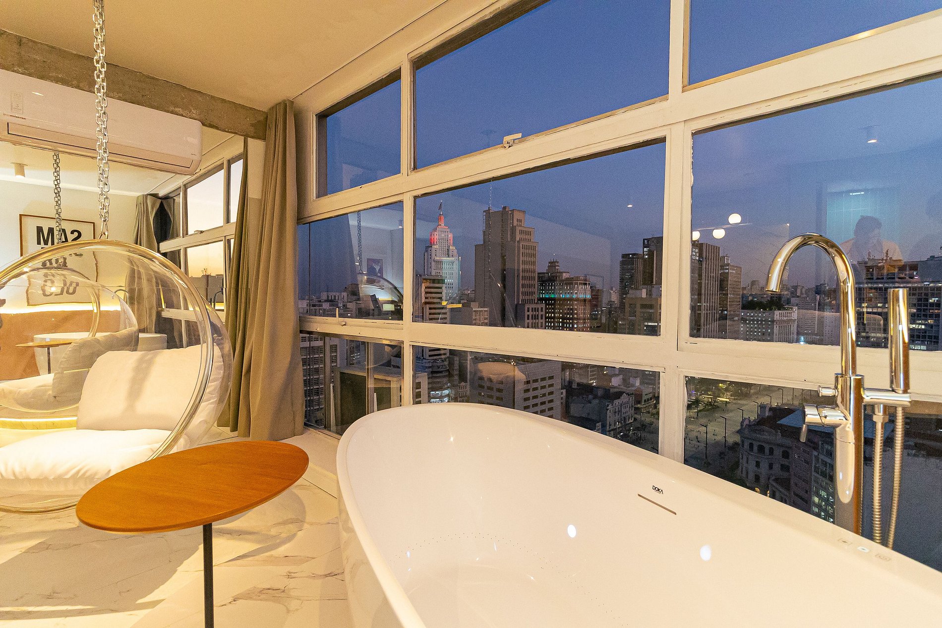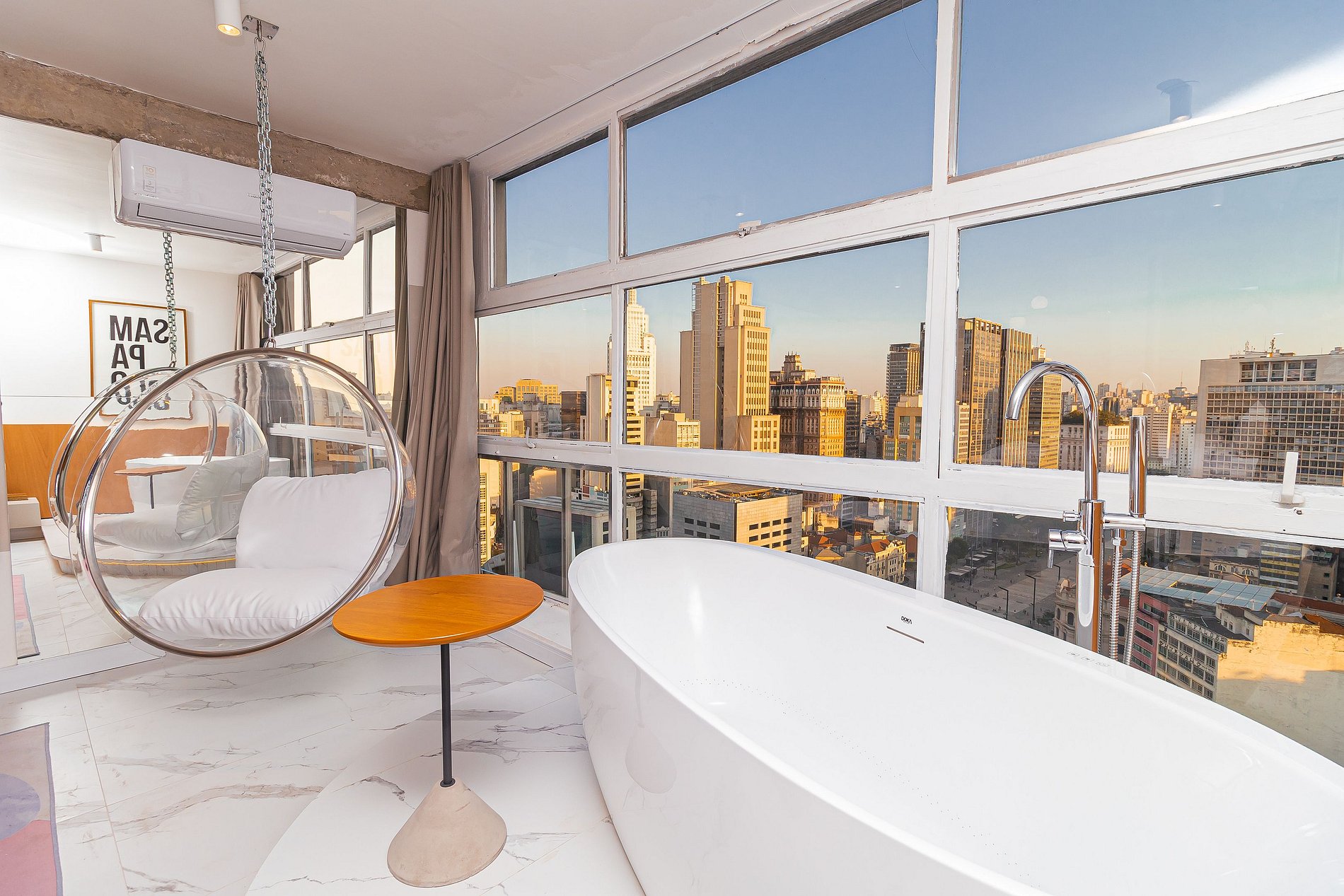 Com uma localização incrível e escolhas de projeto únicas como um lindissímo balanço bubble e uma banheira estrategicamente virada para a vista da cidade, o estúdio, está em frente ao novo e recém revitalizado Vale do Anhangabaú, onde fica fácil de explorar o centro histórico e as redondezas, a partir de um dos pontos mais efervescentes do coração da cidade de São Paulo.