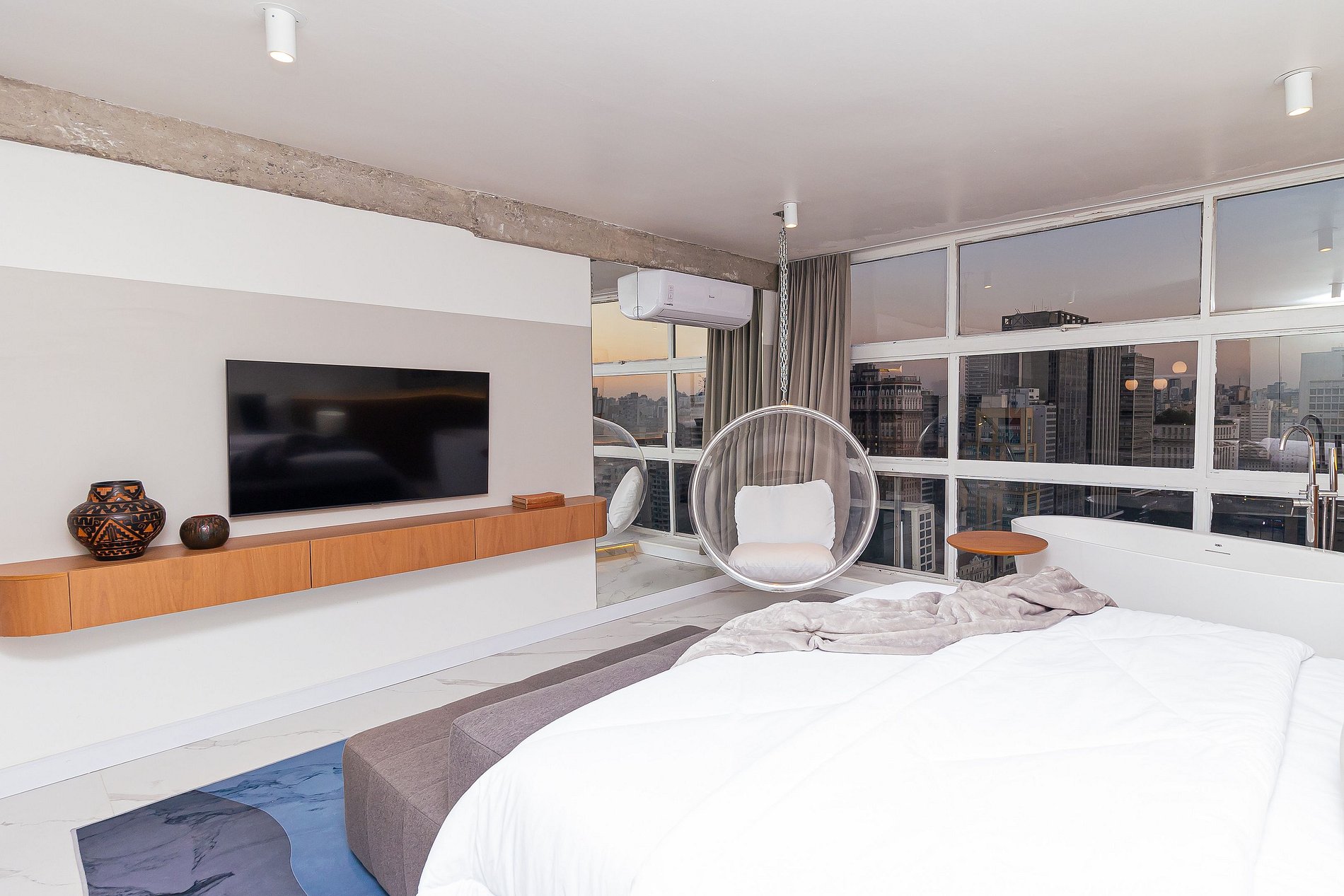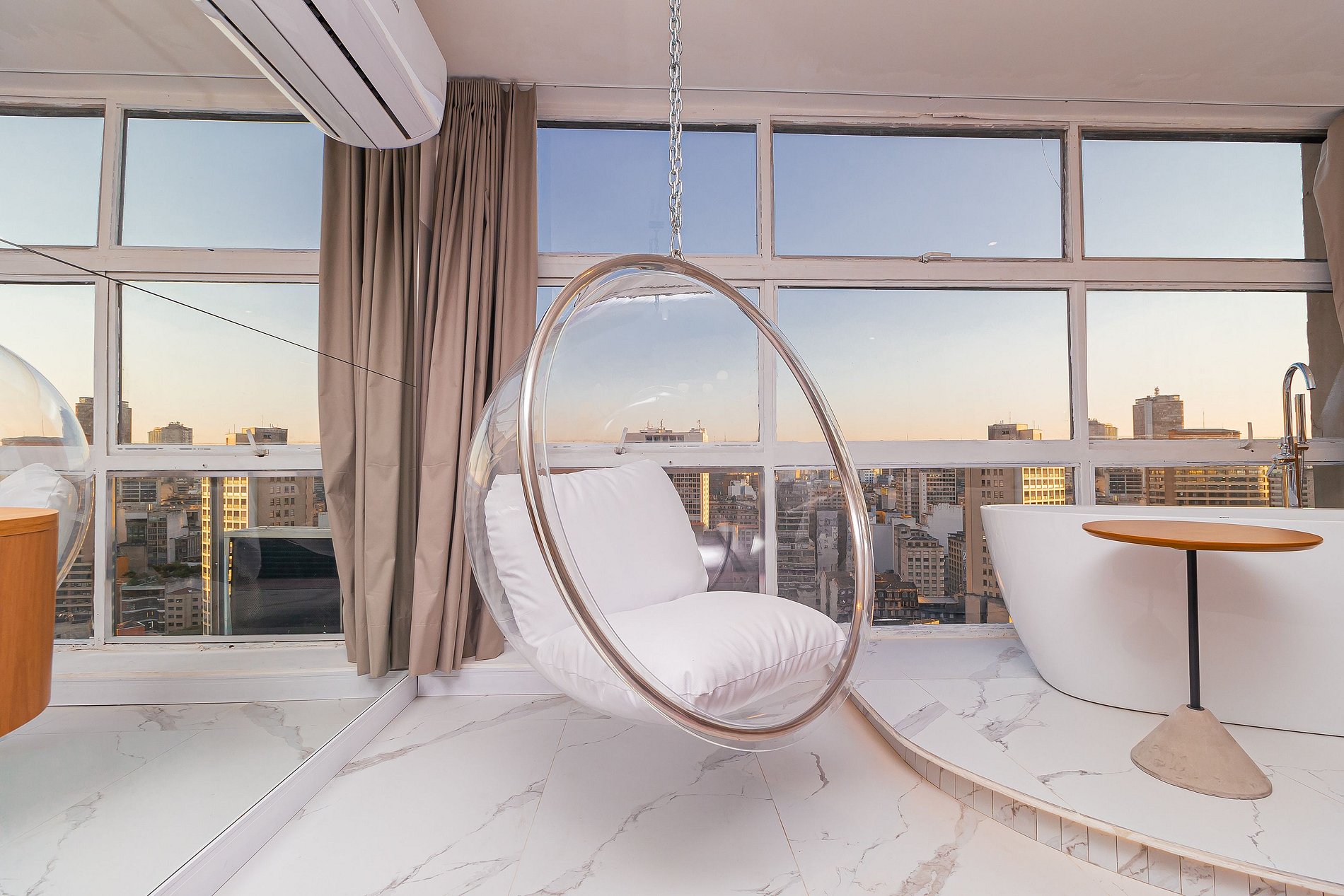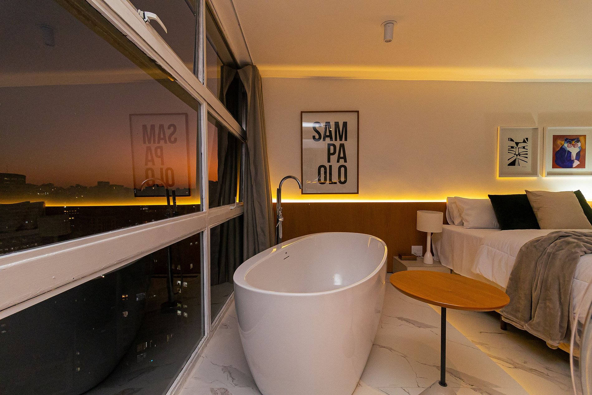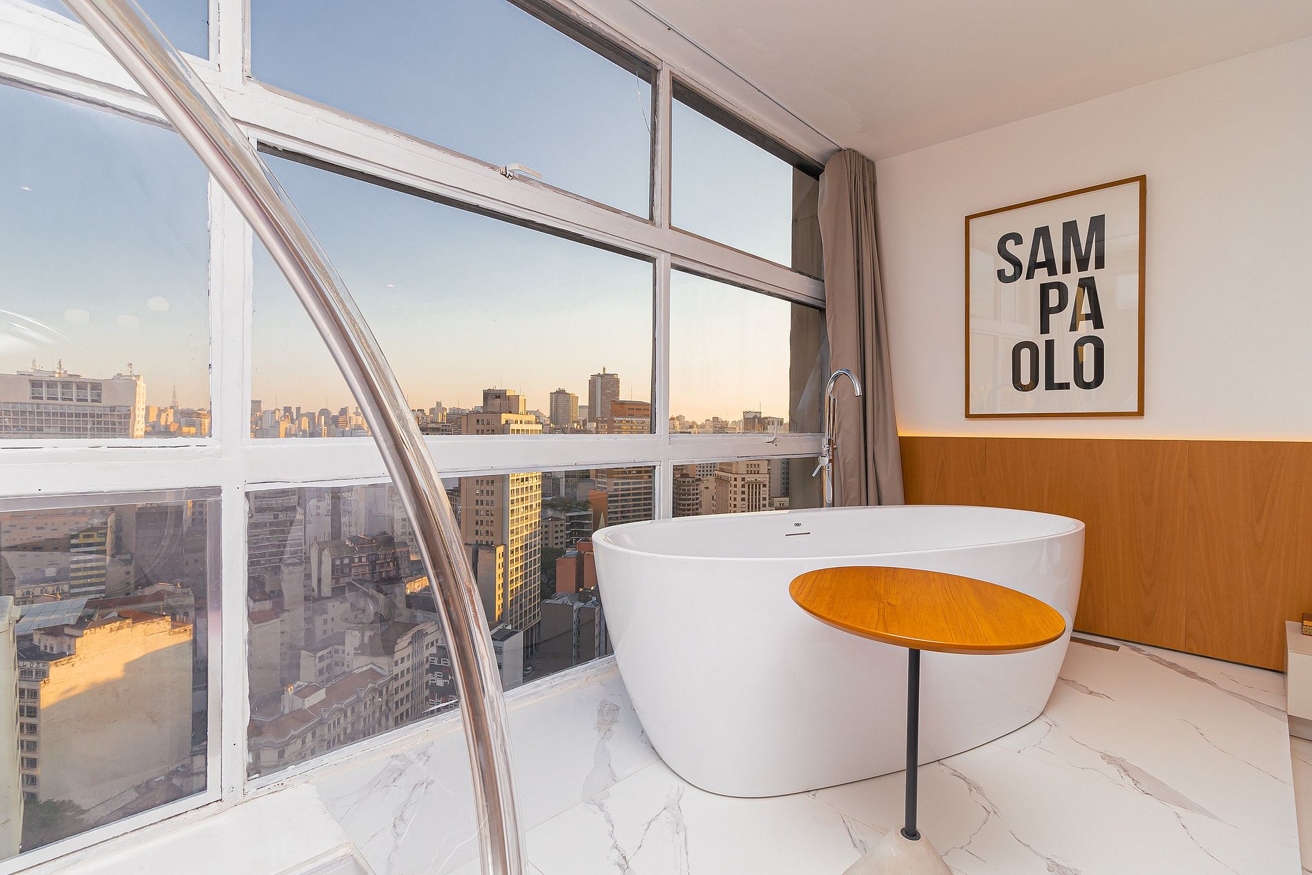 Com uma localização incrível e escolhas de projeto únicas como um lindissímo balanço bubble e uma banheira estrategicamente virada para a vista da cidade, o estúdio, está em frente ao novo e recém revitalizado Vale do Anhangabaú, onde fica fácil de explorar o centro histórico e as redondezas, a partir de um dos pontos mais efervescentes do coração da cidade de São Paulo.