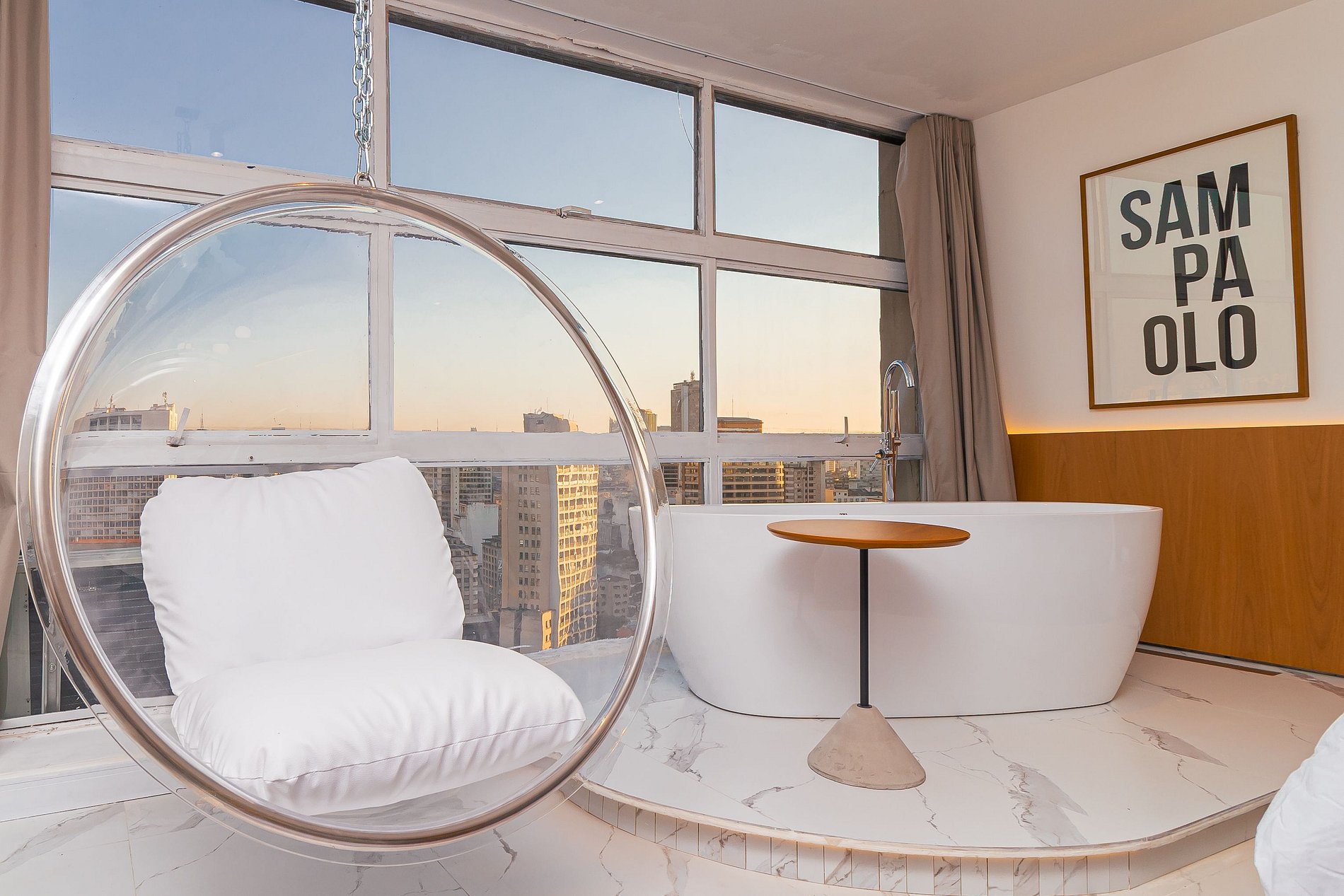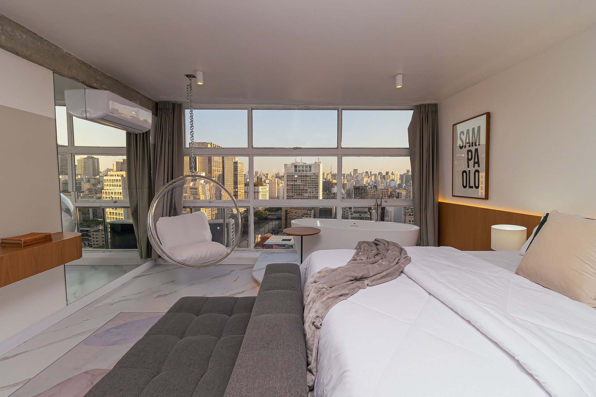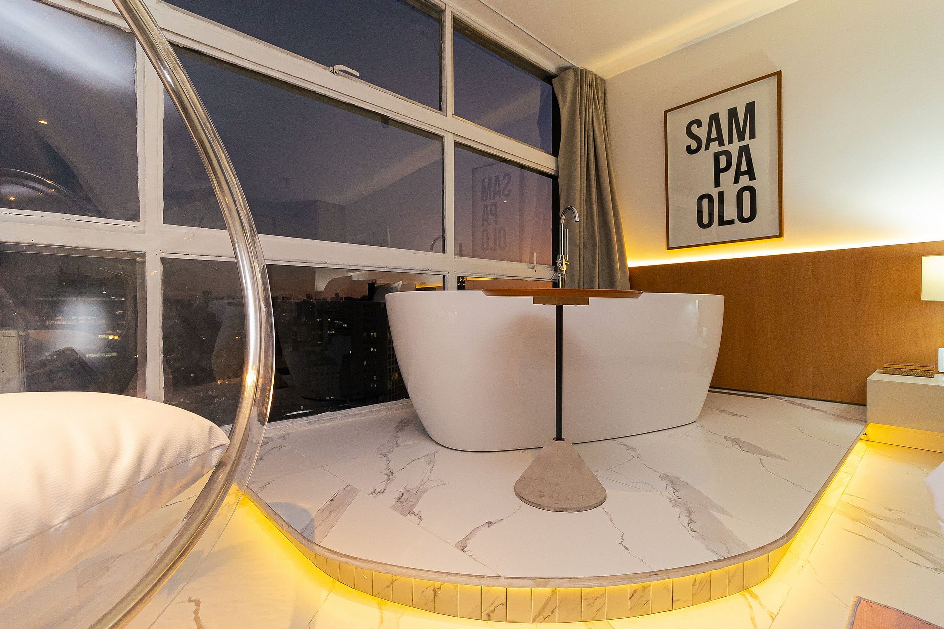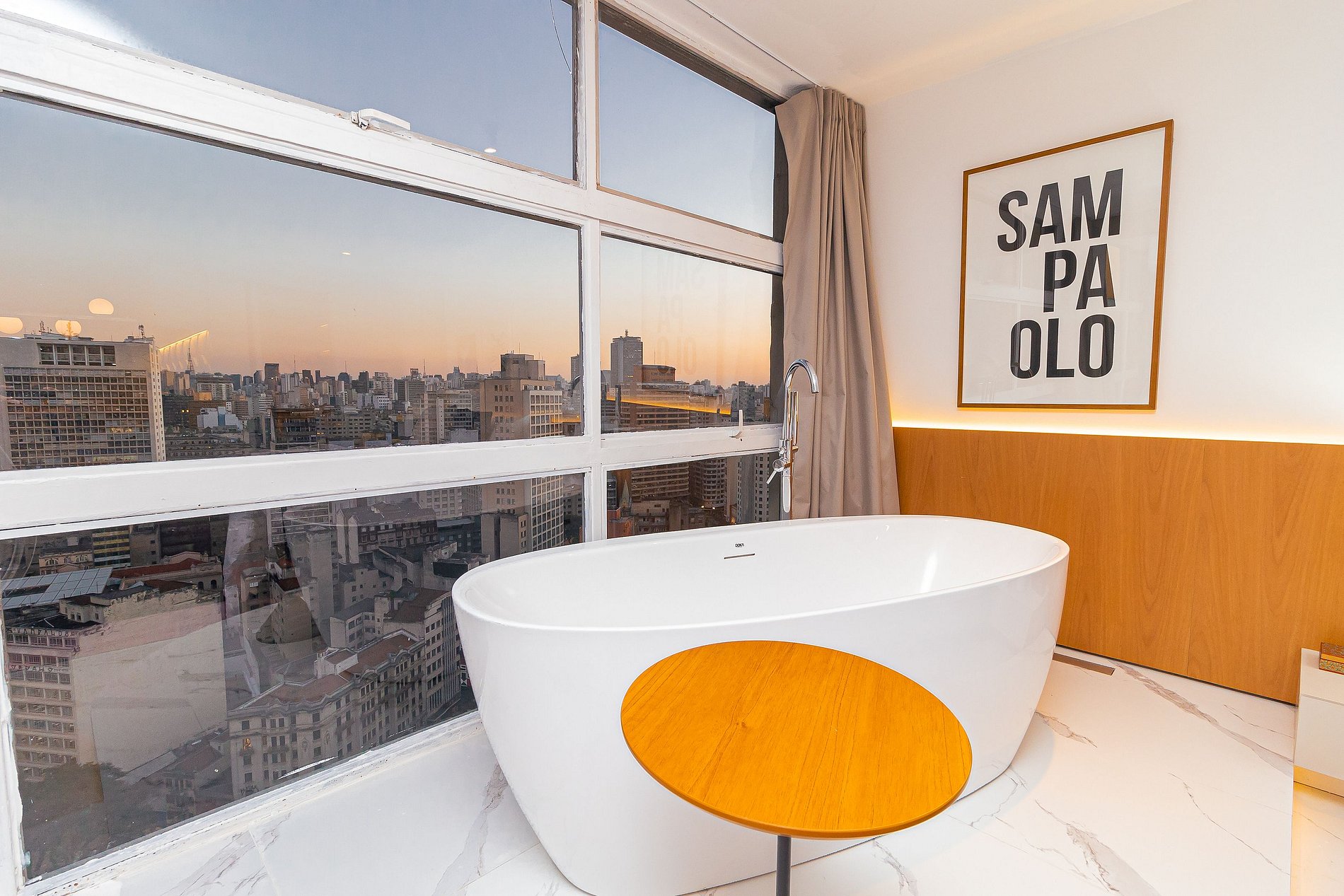 Com uma localização incrível e escolhas de projeto únicas como um lindissímo balanço bubble e uma banheira estrategicamente virada para a vista da cidade, o estúdio, está em frente ao novo e recém revitalizado Vale do Anhangabaú, onde fica fácil de explorar o centro histórico e as redondezas, a partir de um dos pontos mais efervescentes do coração da cidade de São Paulo.