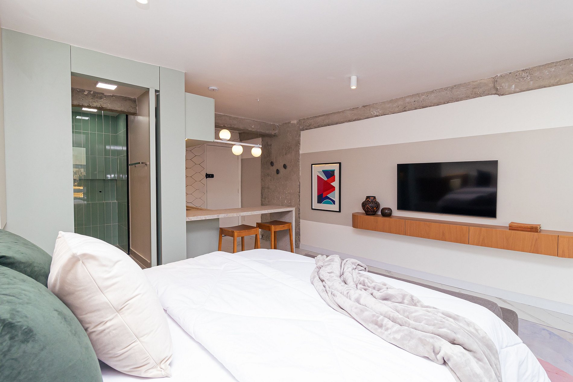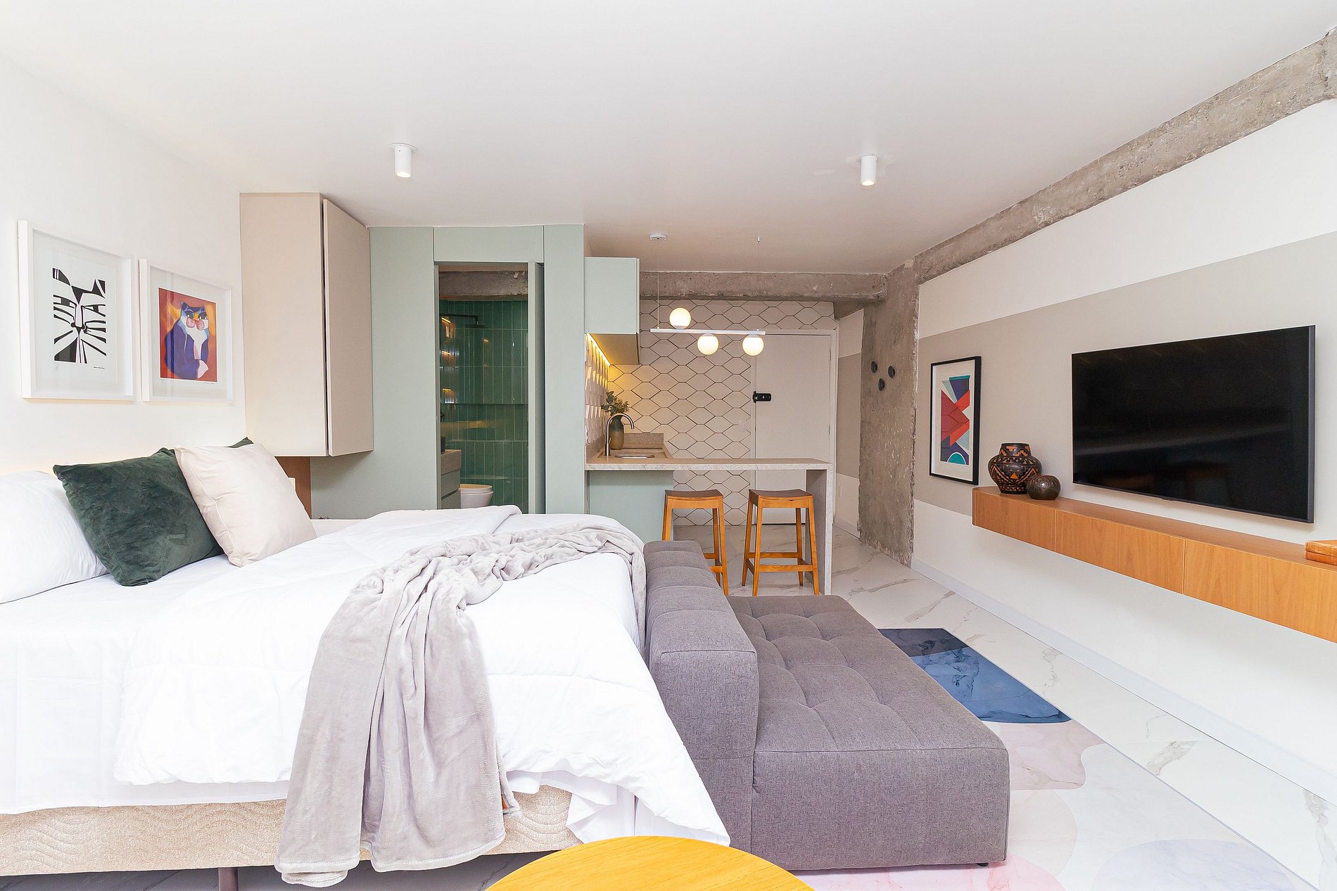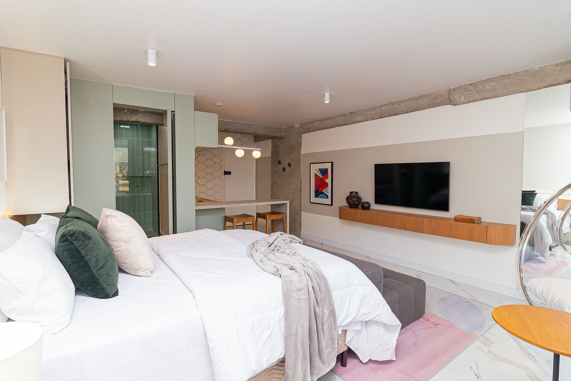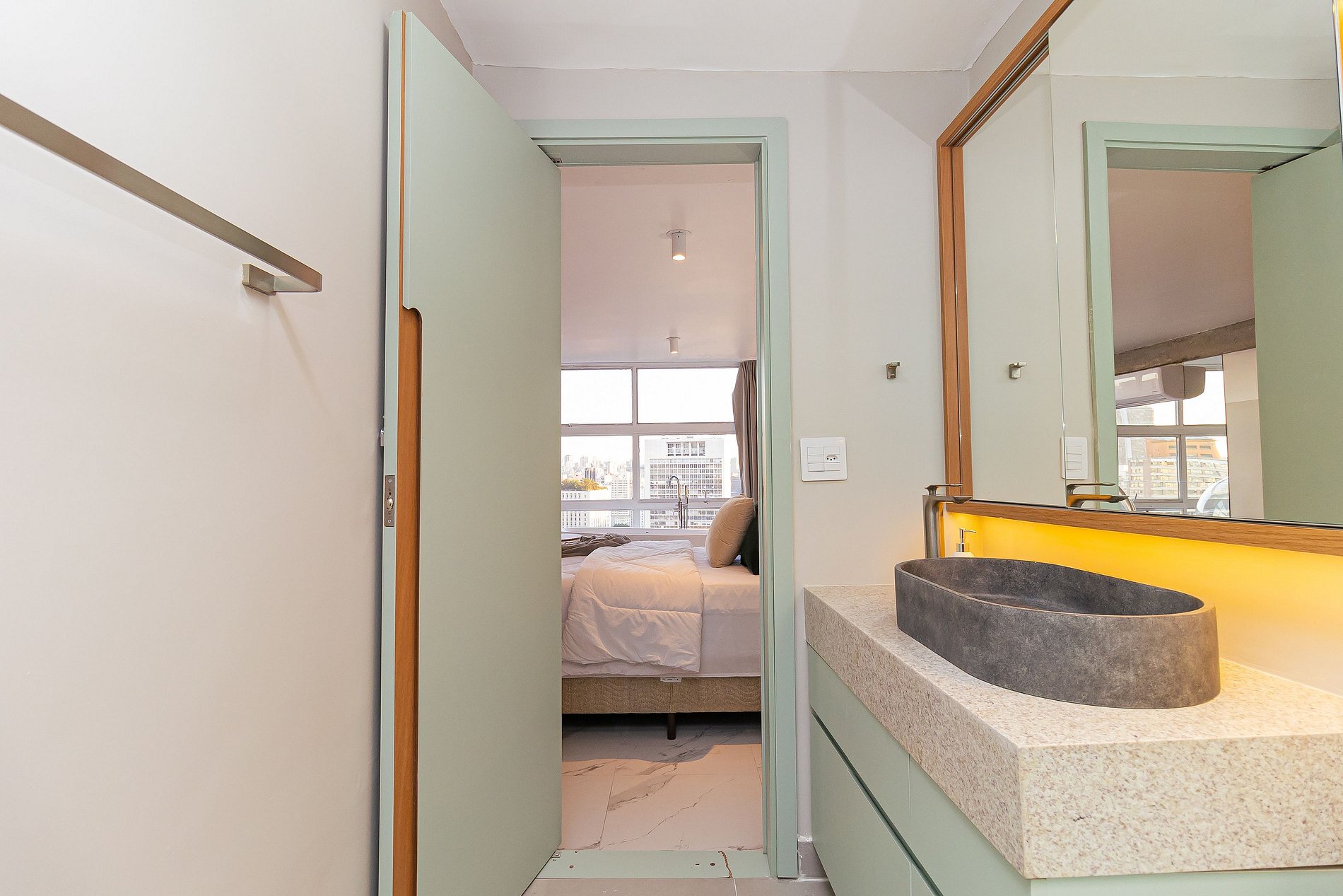 Com uma localização incrível e escolhas de projeto únicas como um lindissímo balanço bubble e uma banheira estrategicamente virada para a vista da cidade, o estúdio, está em frente ao novo e recém revitalizado Vale do Anhangabaú, onde fica fácil de explorar o centro histórico e as redondezas, a partir de um dos pontos mais efervescentes do coração da cidade de São Paulo.