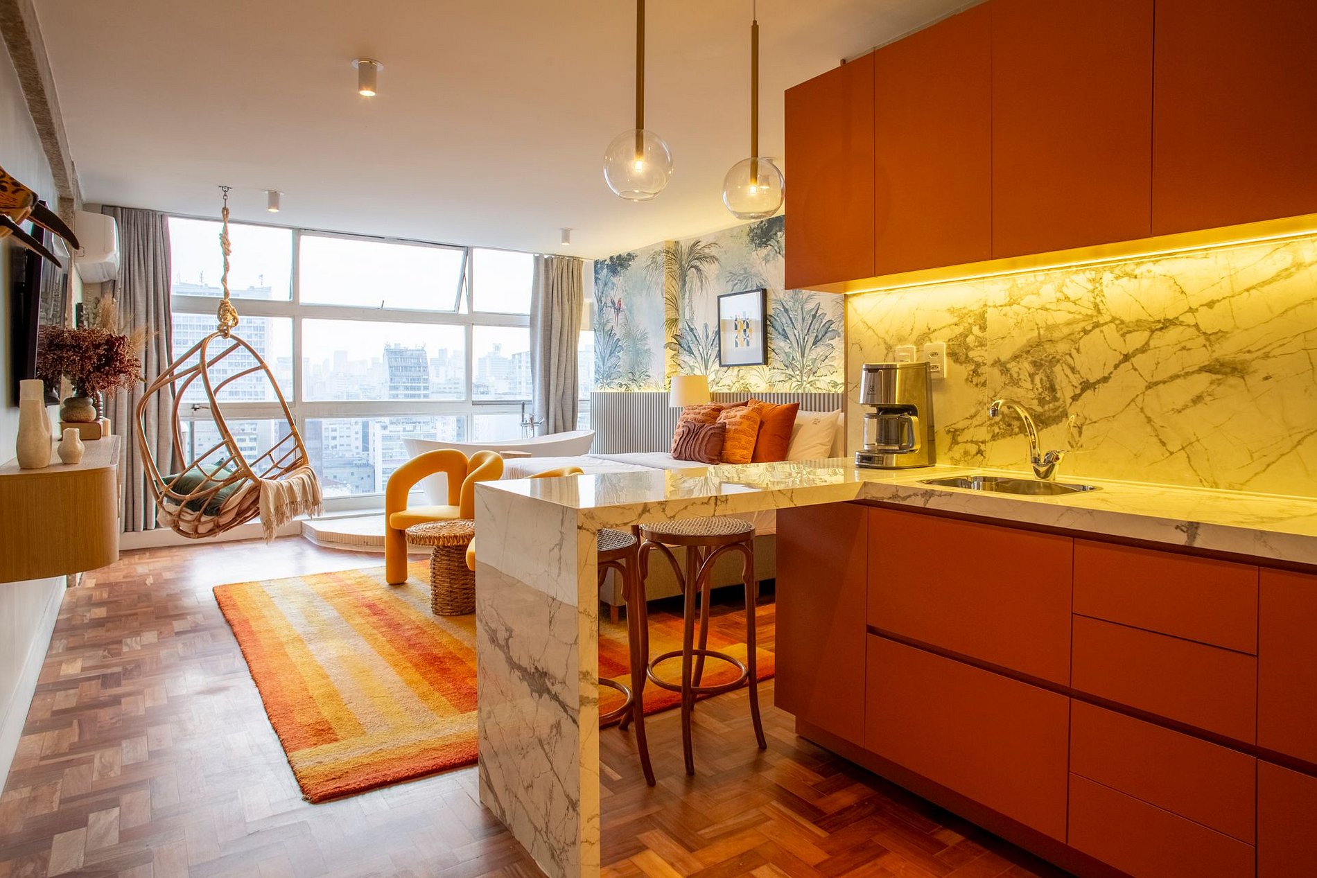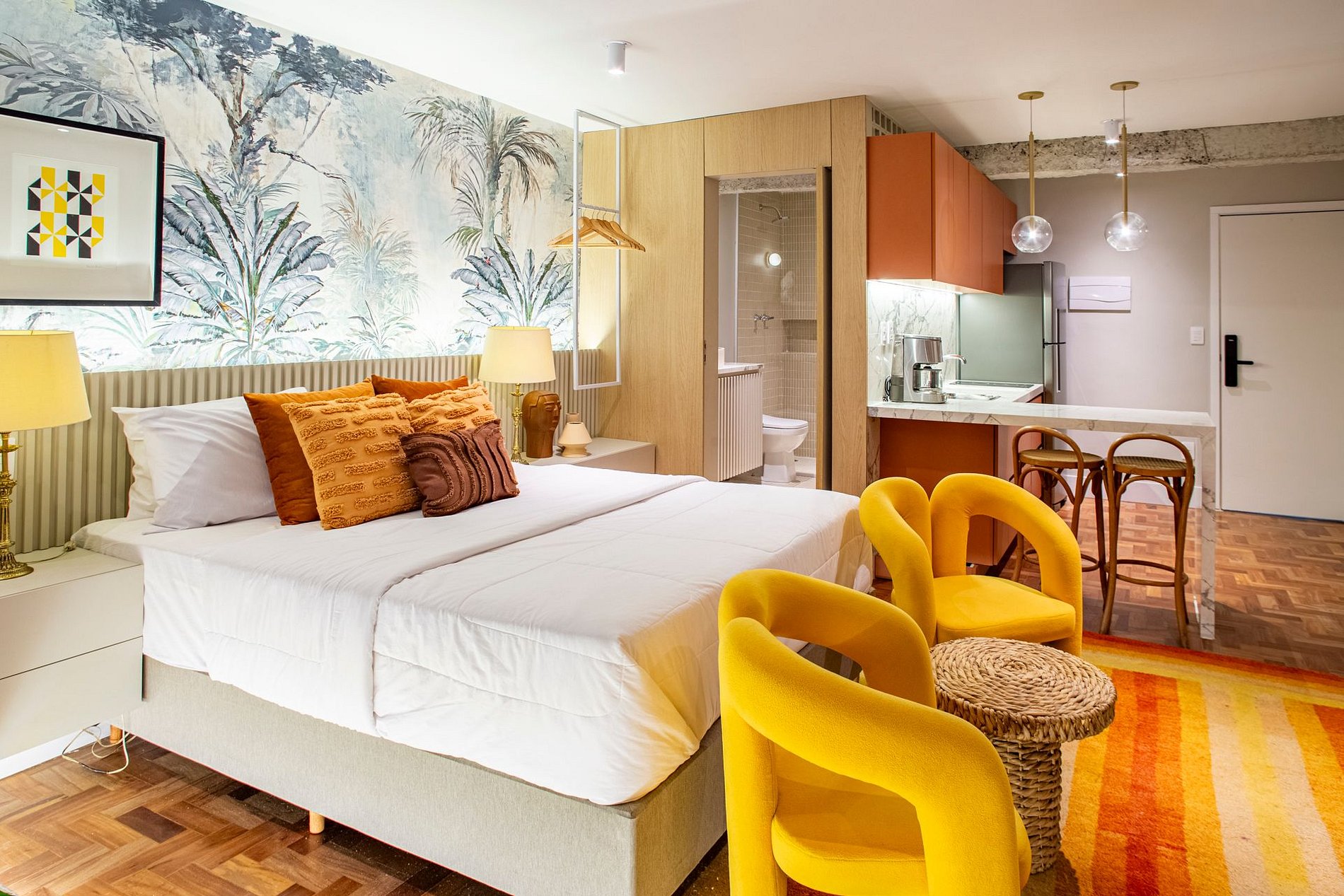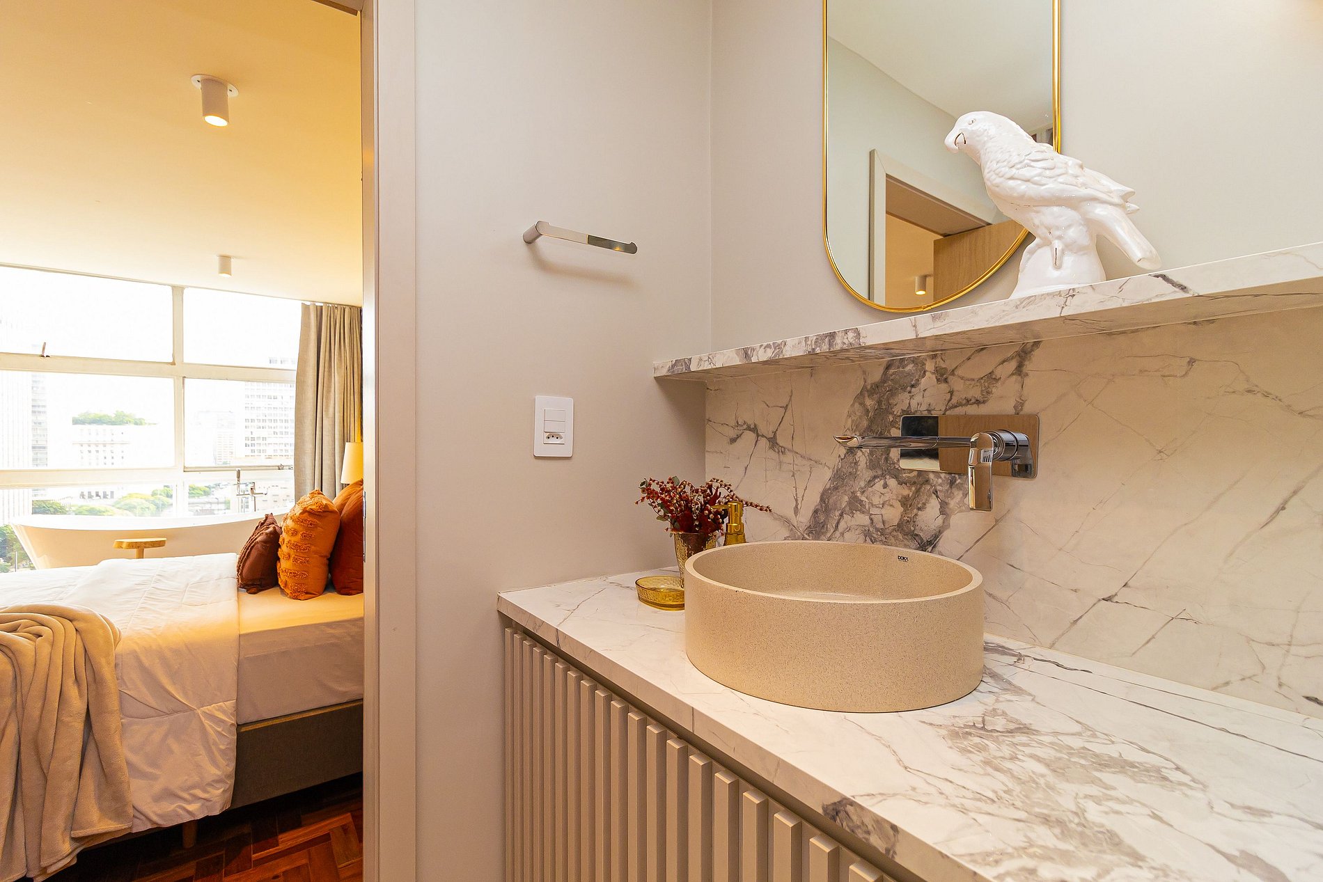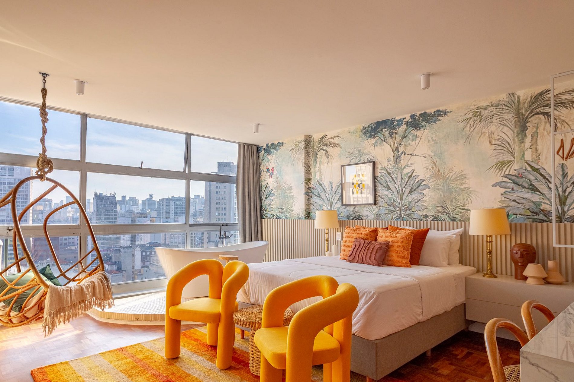 Com uma localização incrível e escolhas de projeto únicas como um lindïssimo balanço rattan e uma banheira estrategicamente virada para a vista da cidade, o estúdio, está em frente ao novo e recém revitalizado Vale do Anhangabaú, onde fica fácil de explorar o centro histórico e as redondezas, a partir de um dos pontos mais efervescentes do coração da cidade de São Paulo.