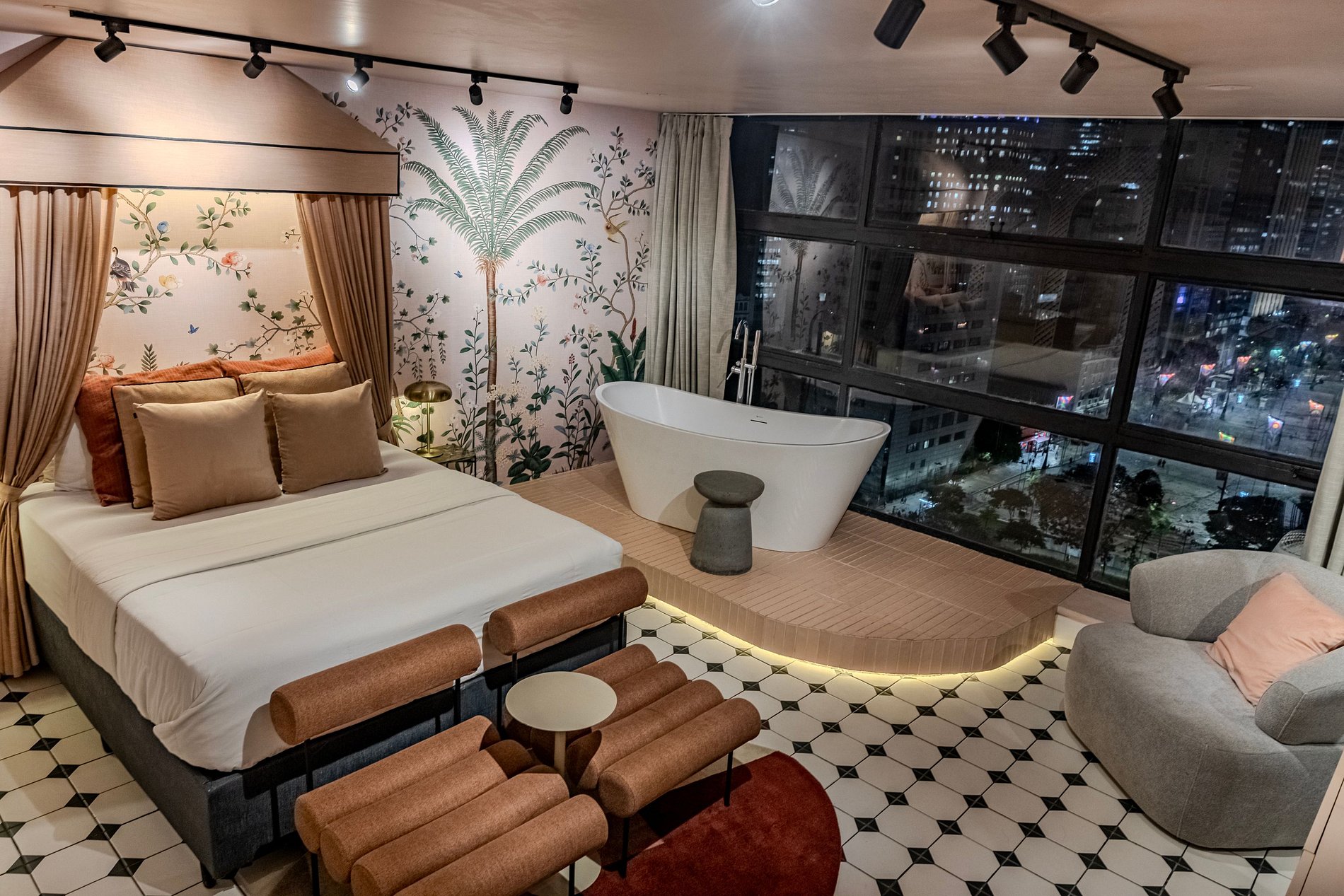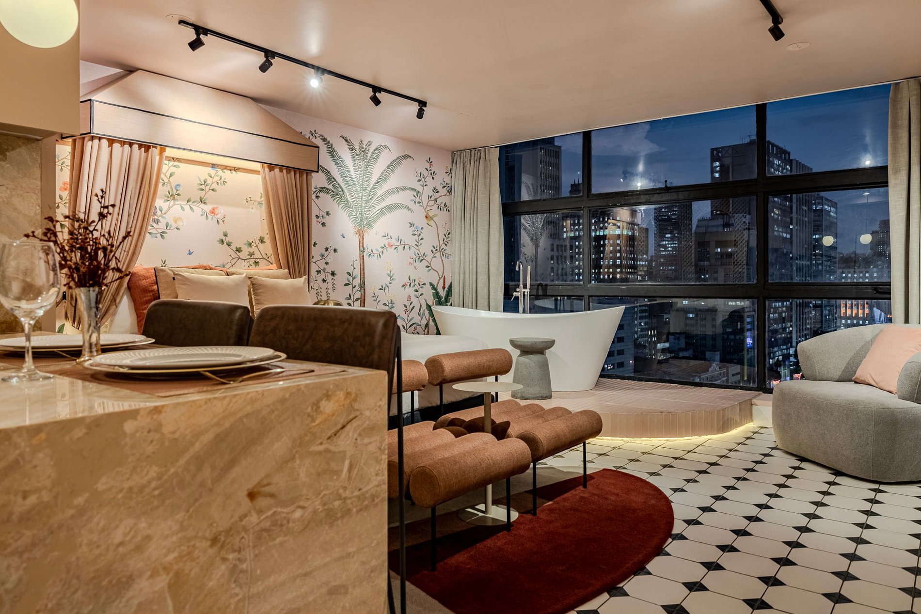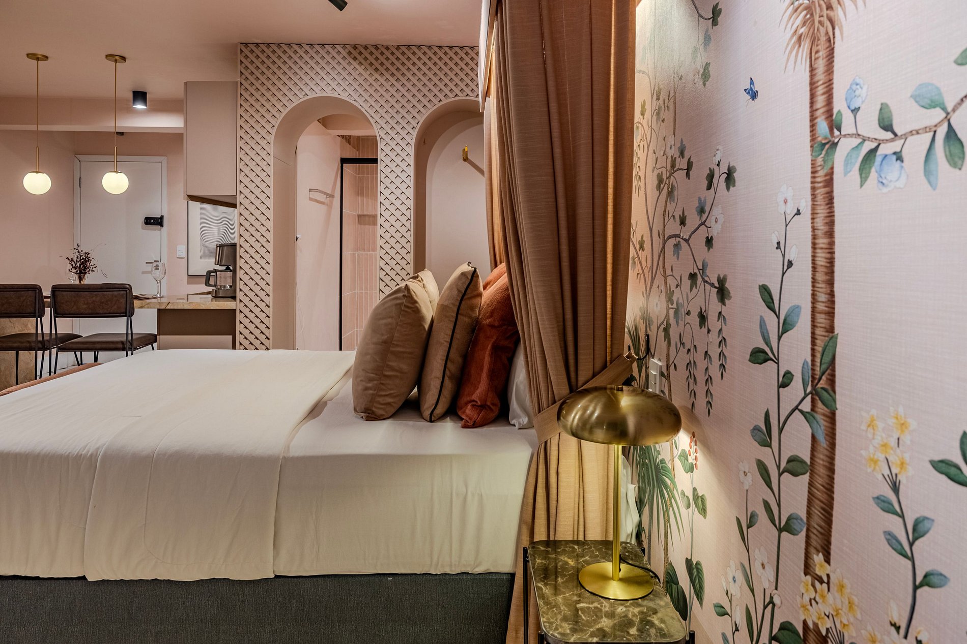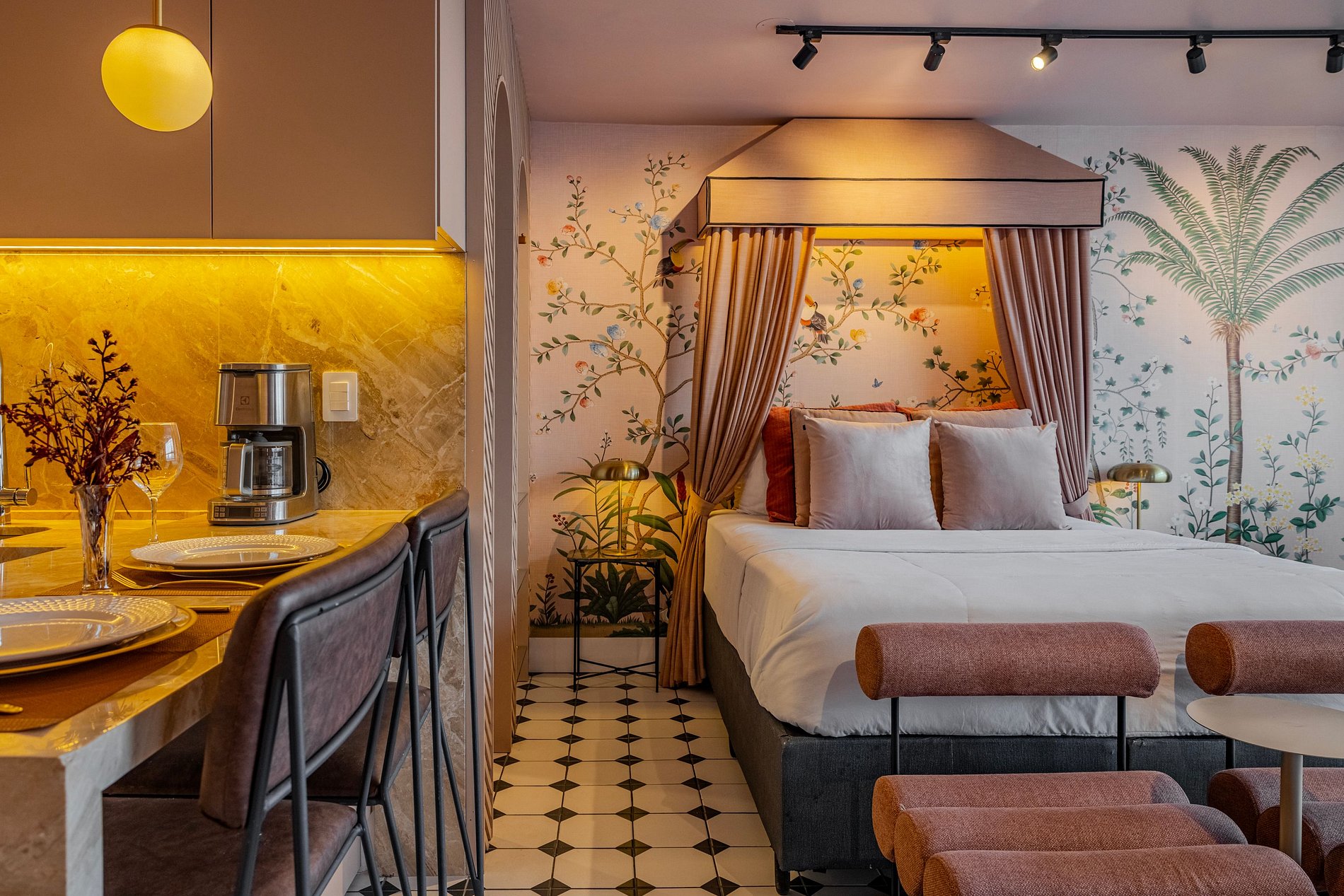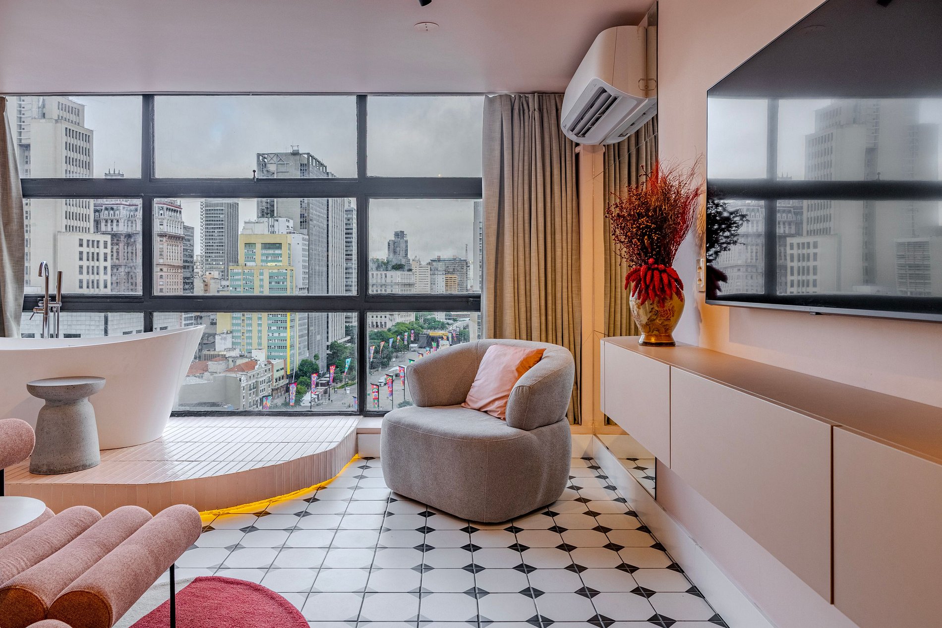 Cada cantinho do apartamento é adornado com toques de glamour, desde luminárias elegantes até acessórios decorativos inspirados no mundo da moda. Desfrute do quarto com cama queen super confortável e roupas de cama finas, garantindo uma noite de sono revigorante.
