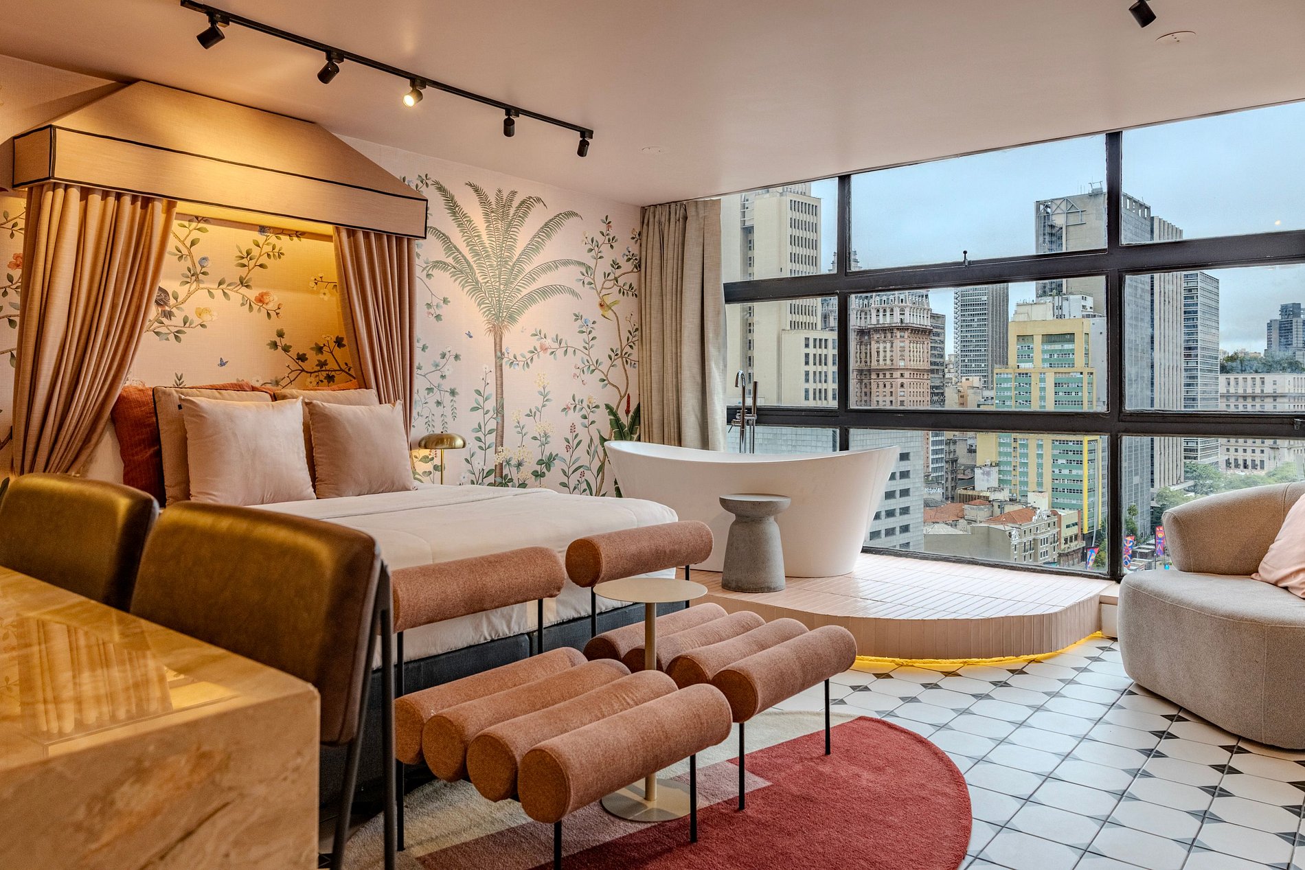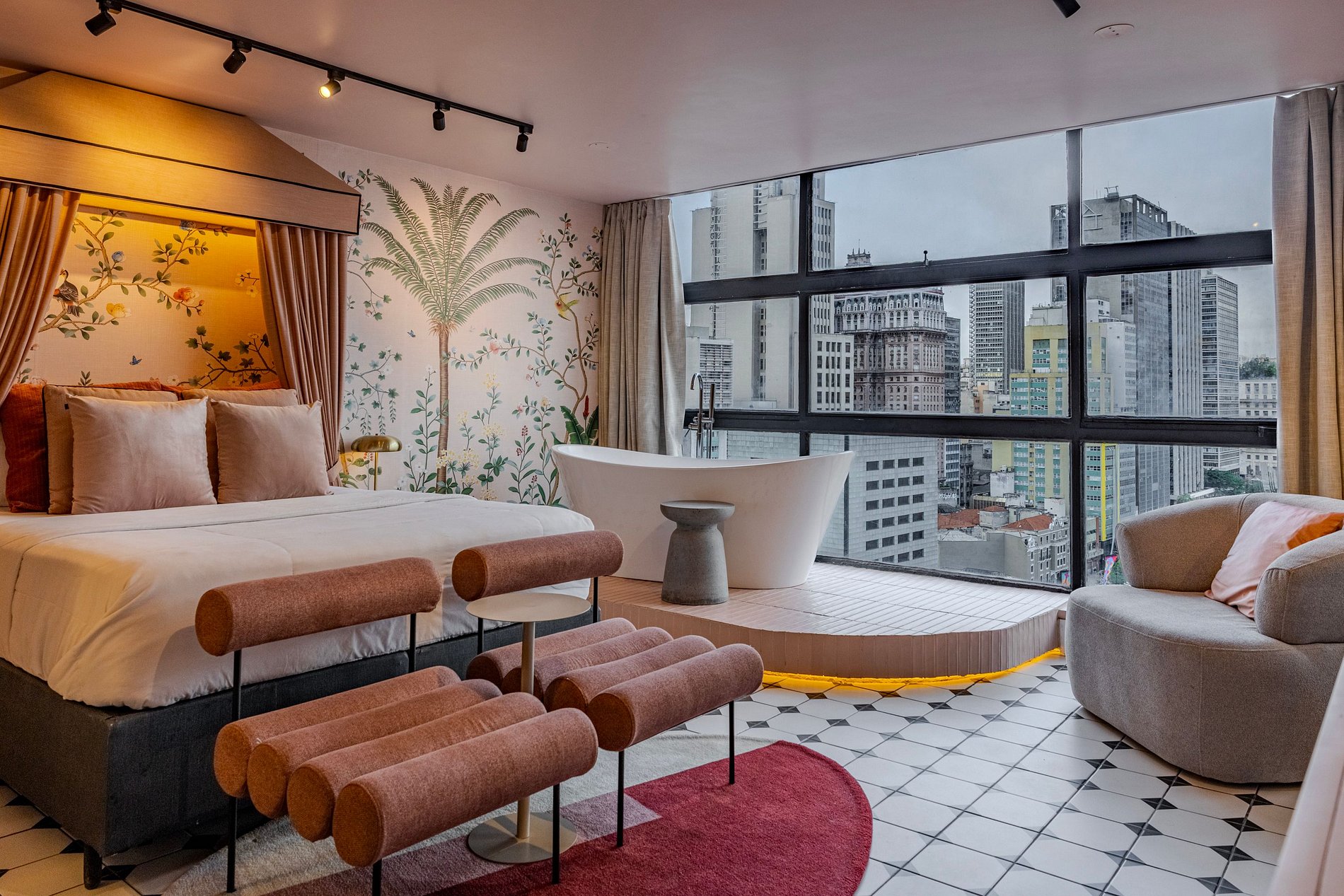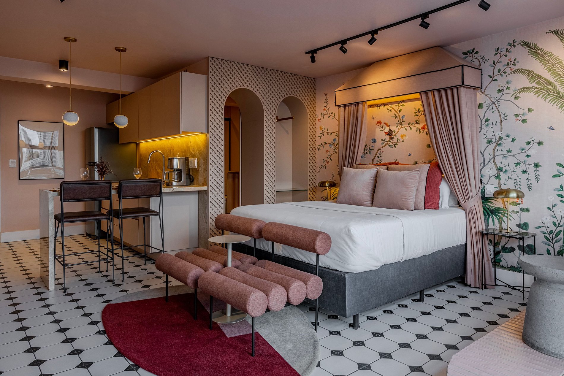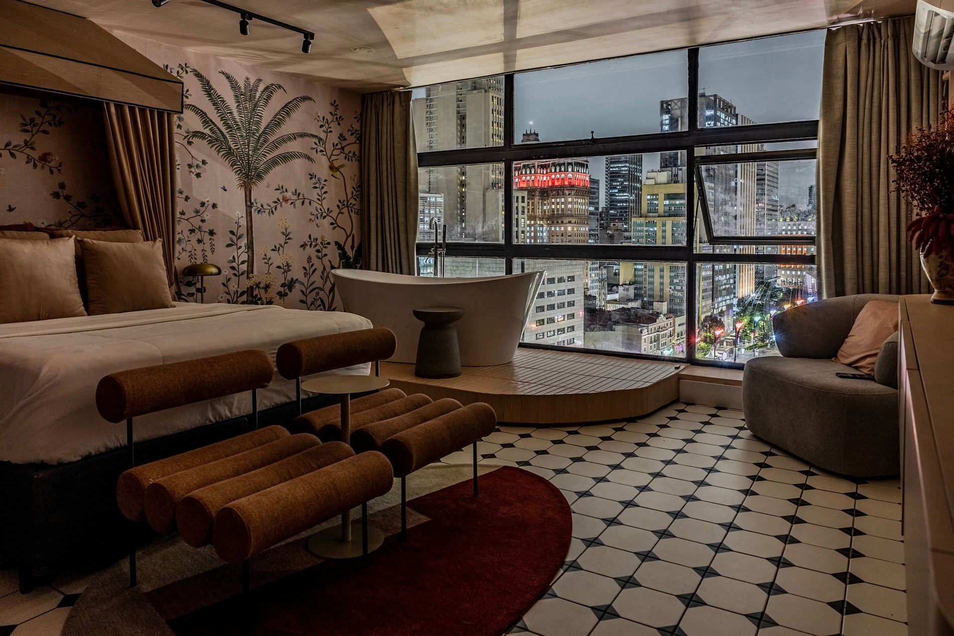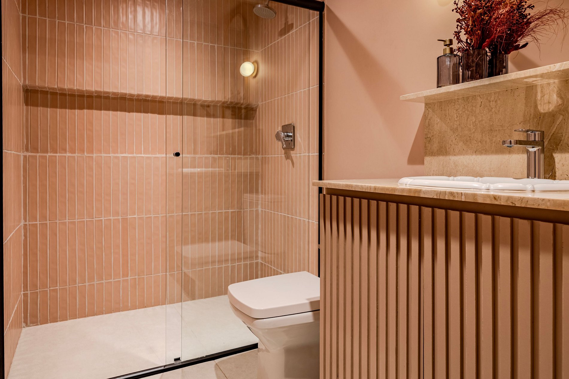 Cada cantinho do apartamento é adornado com toques de glamour, desde luminárias elegantes até acessórios decorativos inspirados no mundo da moda. Desfrute do quarto com cama queen super confortável e roupas de cama finas, garantindo uma noite de sono revigorante.