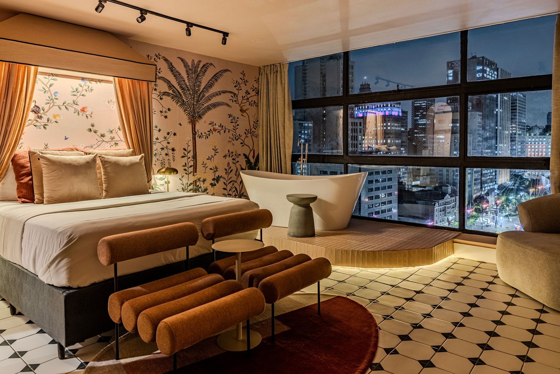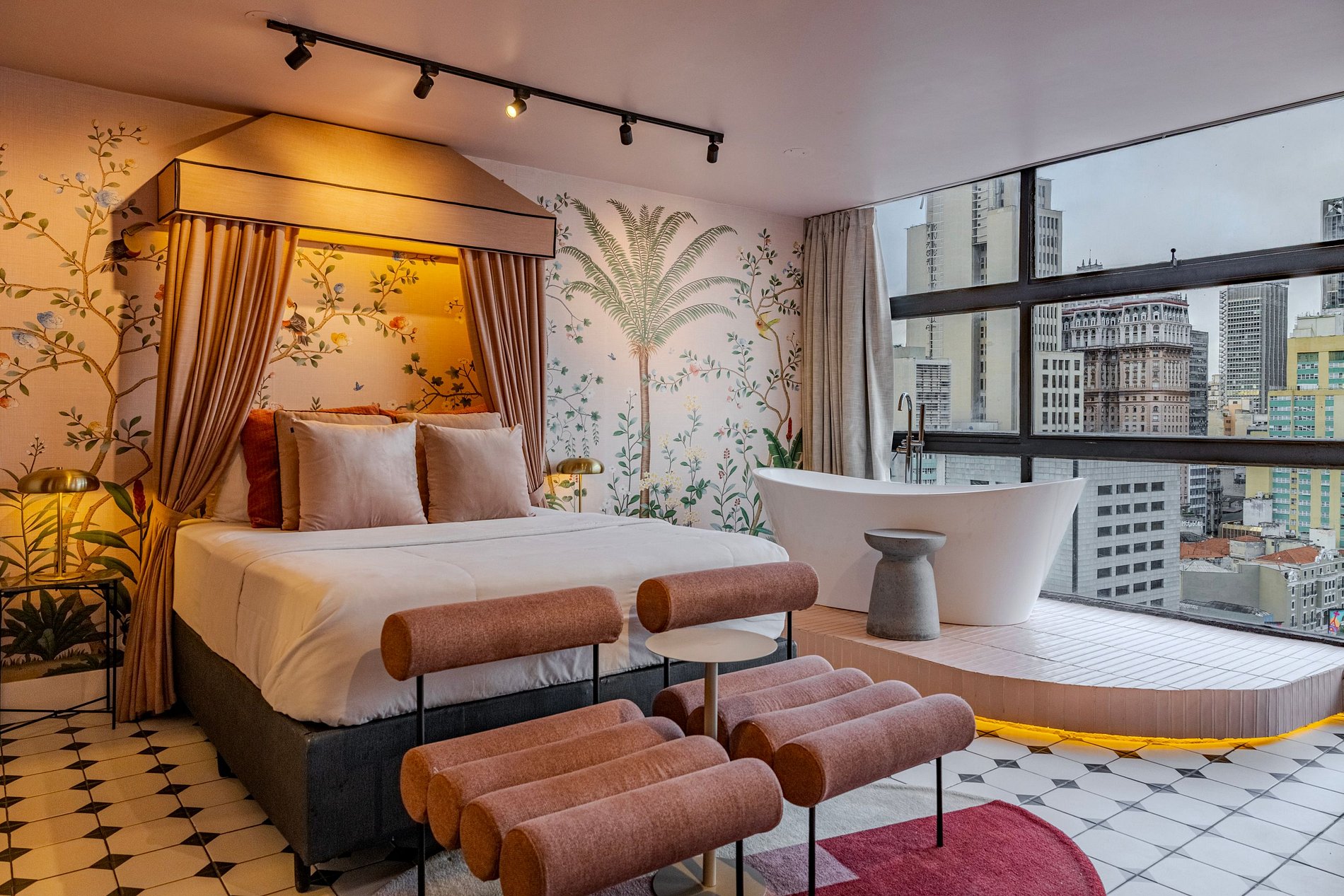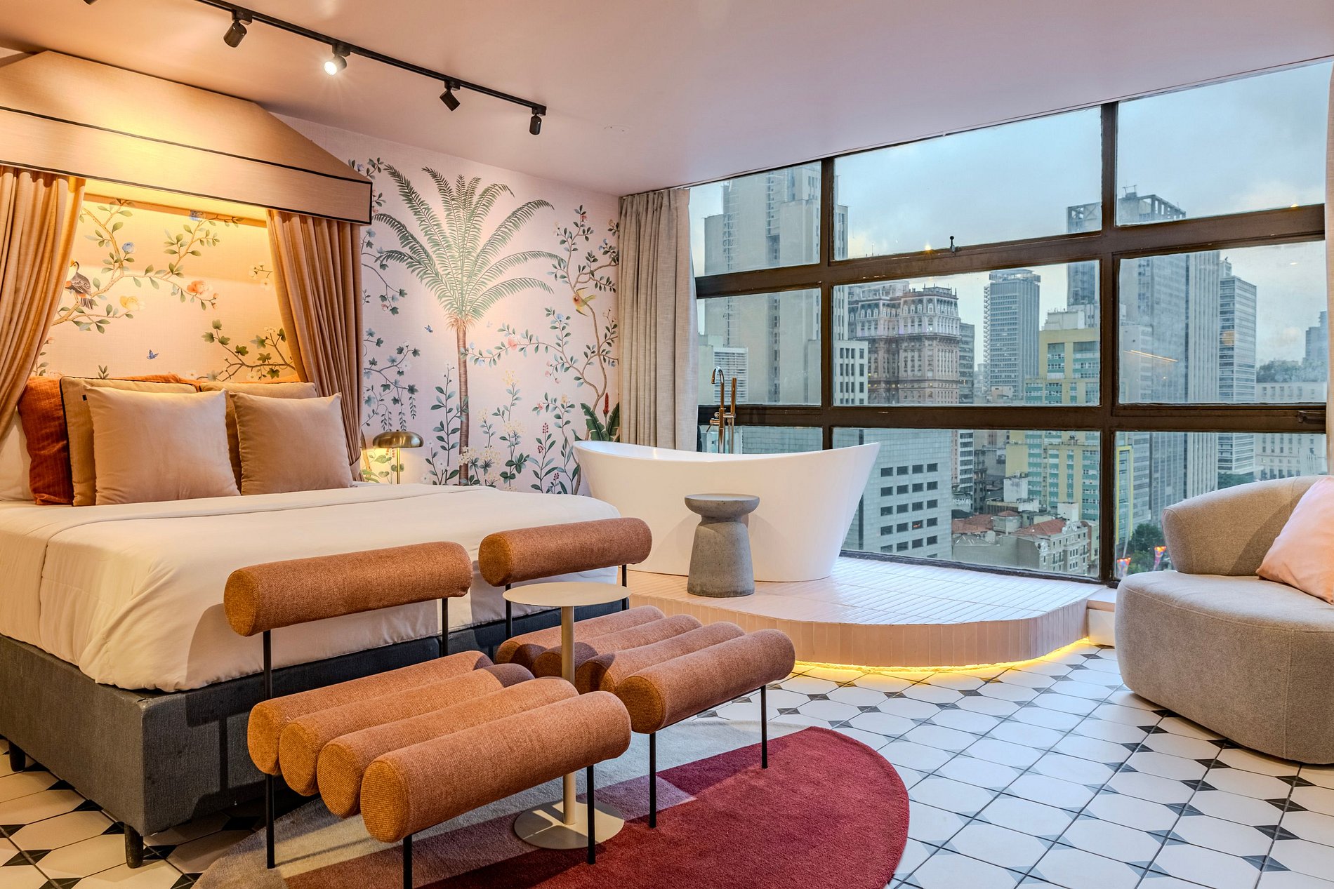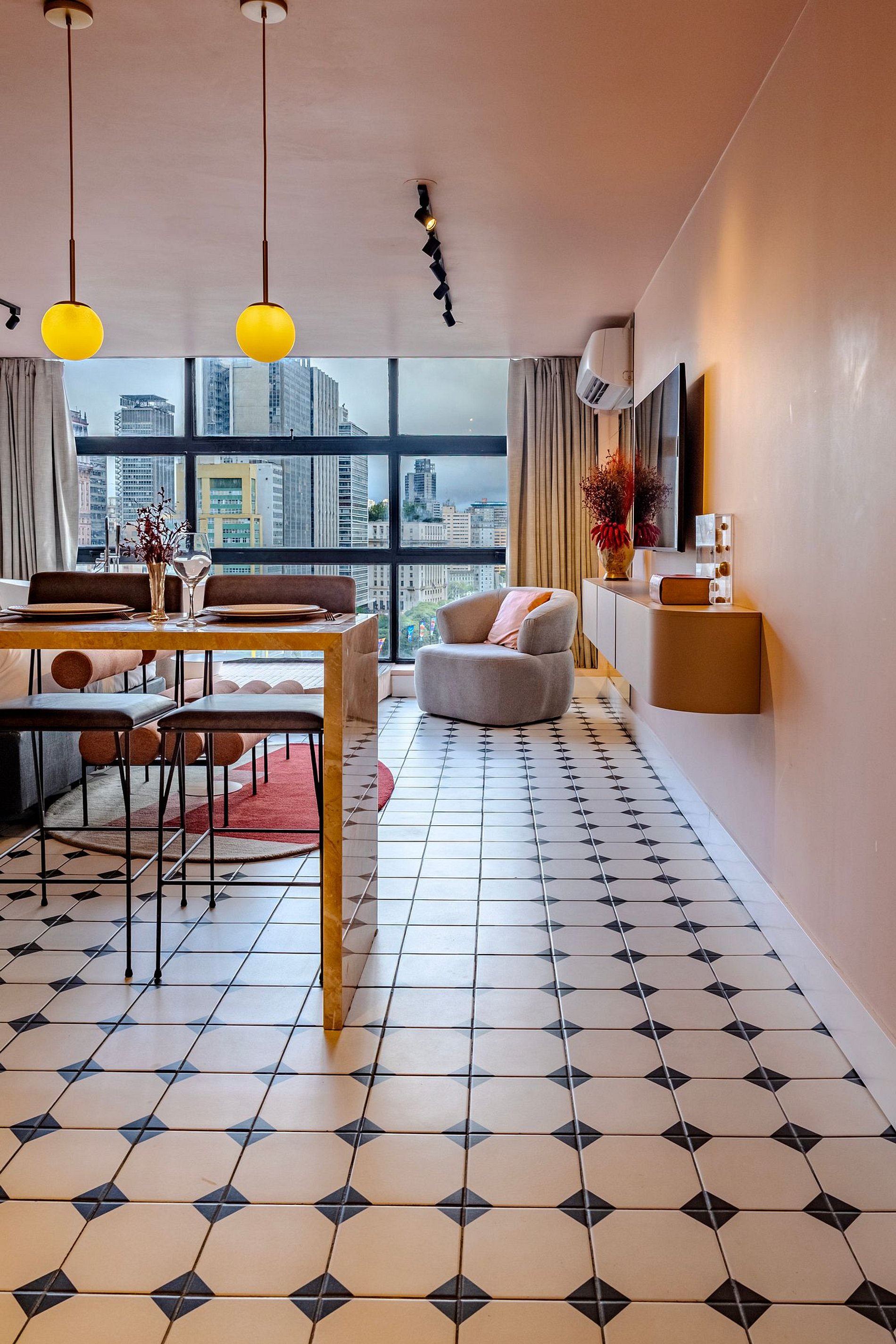 Cada cantinho do apartamento é adornado com toques de glamour, desde luminárias elegantes até acessórios decorativos inspirados no mundo da moda. Desfrute do quarto com cama queen super confortável e roupas de cama finas, garantindo uma noite de sono revigorante.