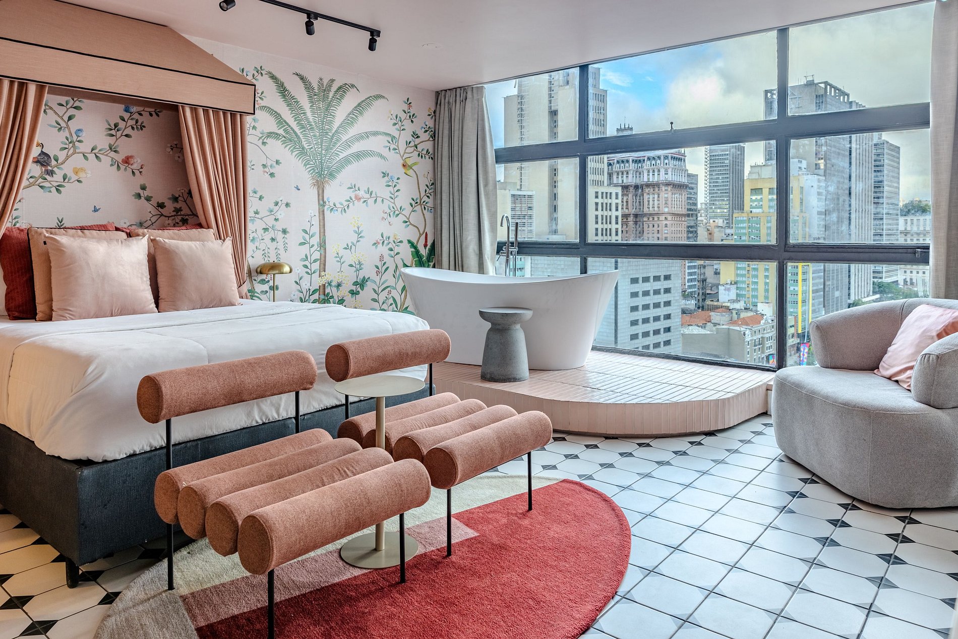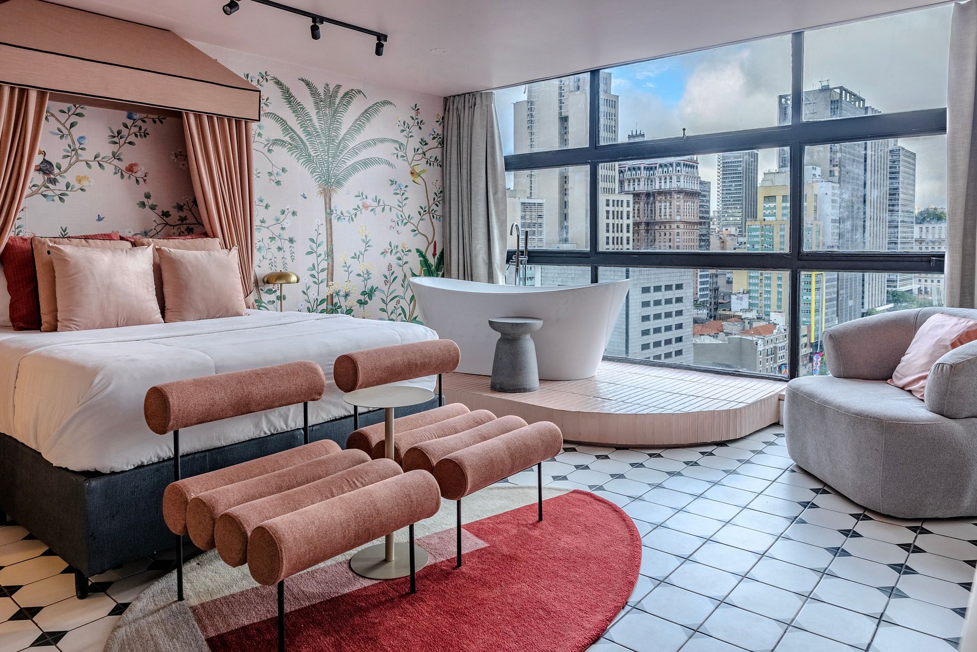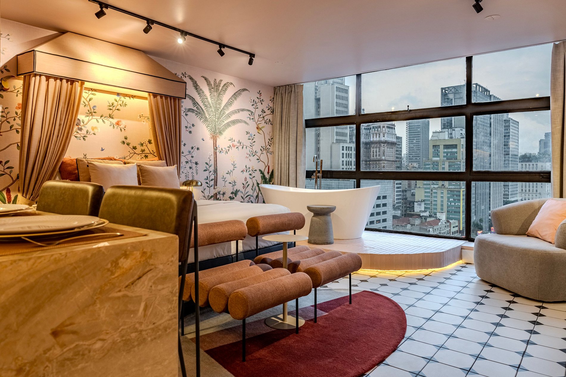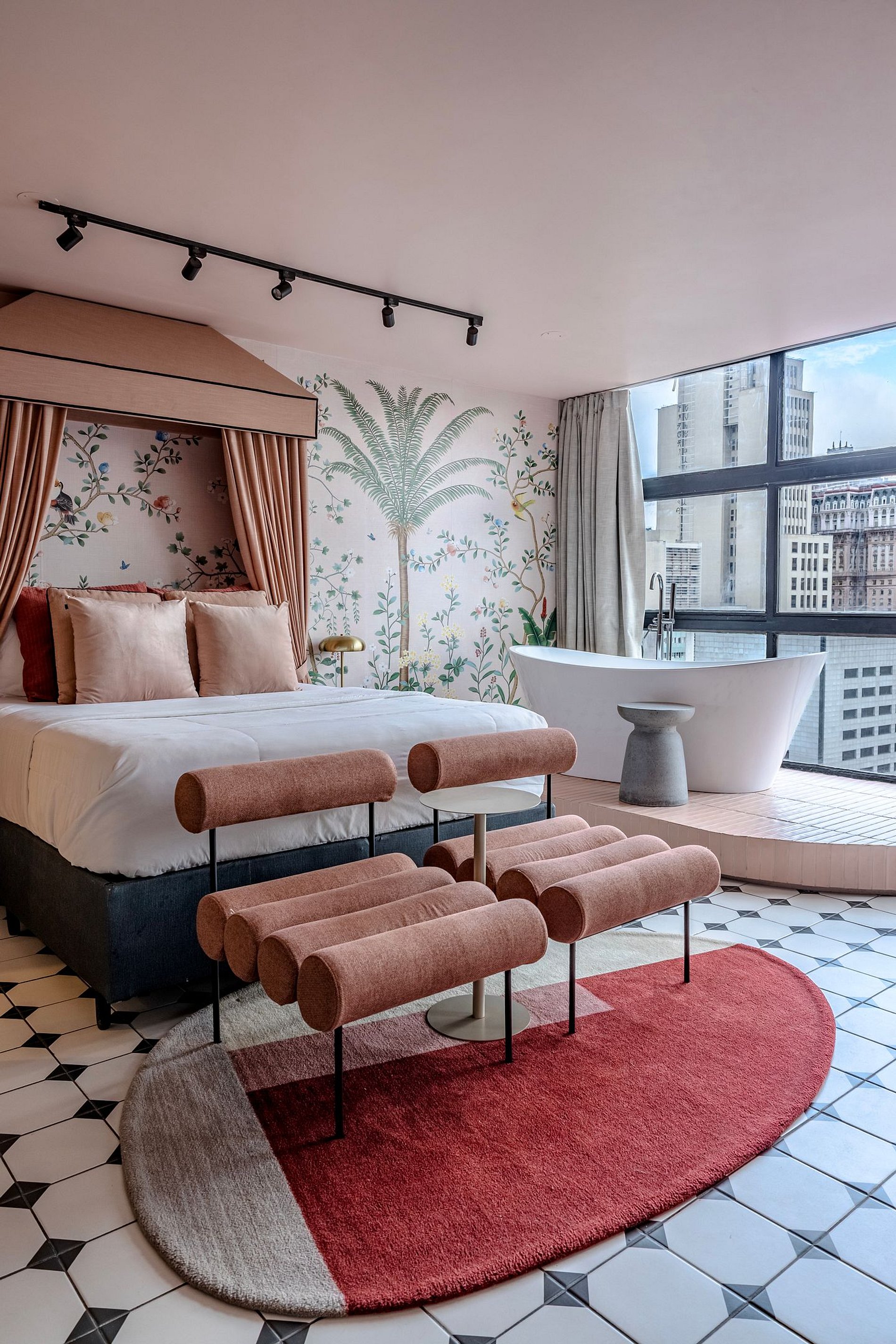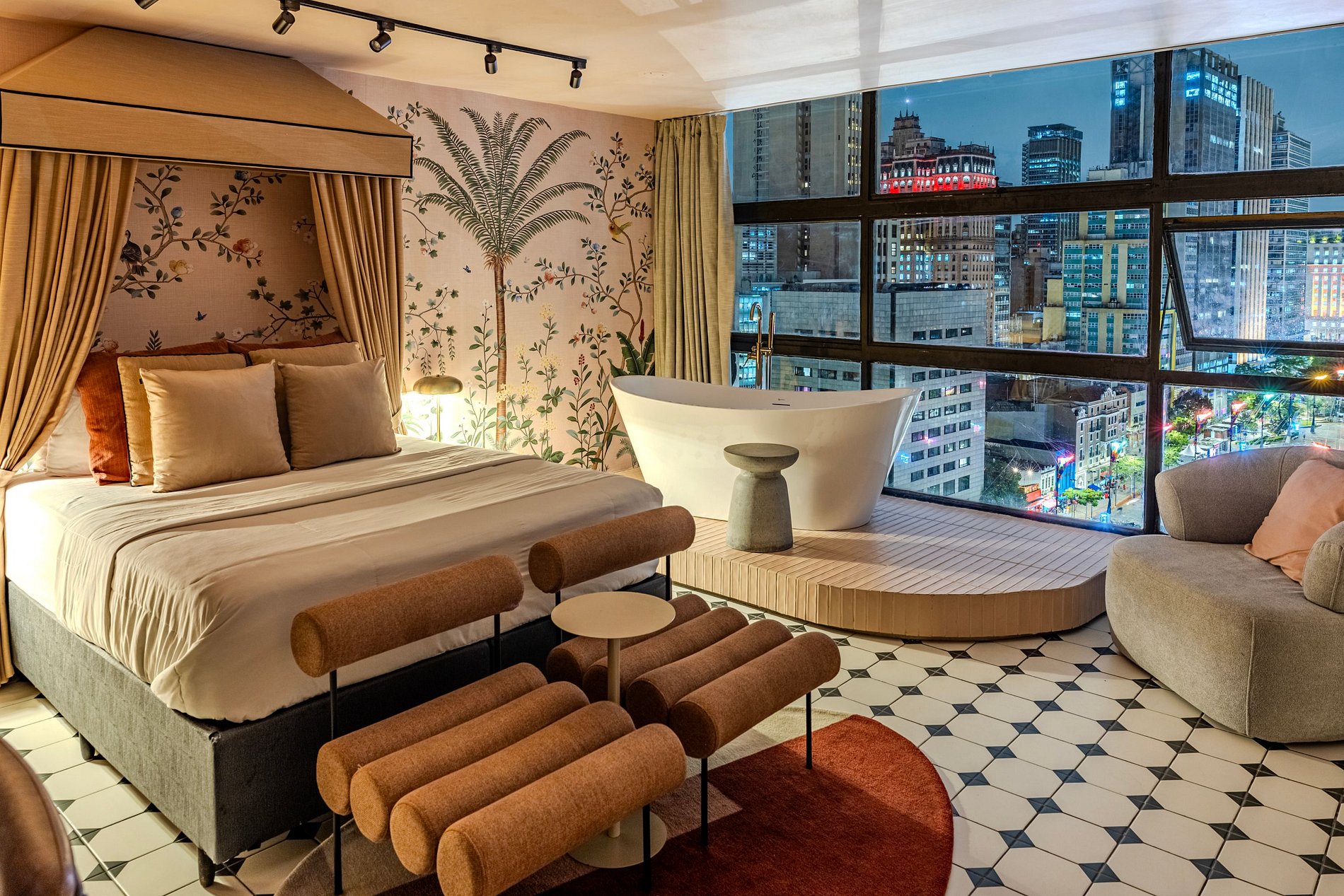 Cada cantinho do apartamento é adornado com toques de glamour, desde luminárias elegantes até acessórios decorativos inspirados no mundo da moda. Desfrute do quarto com cama queen super confortável e roupas de cama finas, garantindo uma noite de sono revigorante.
