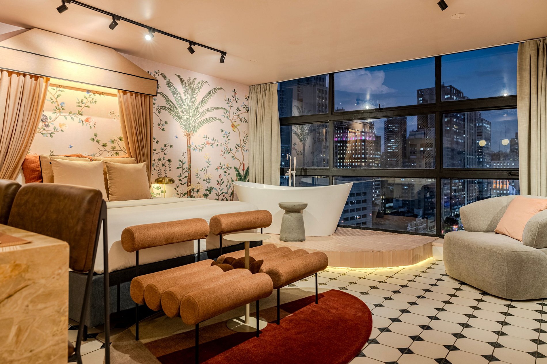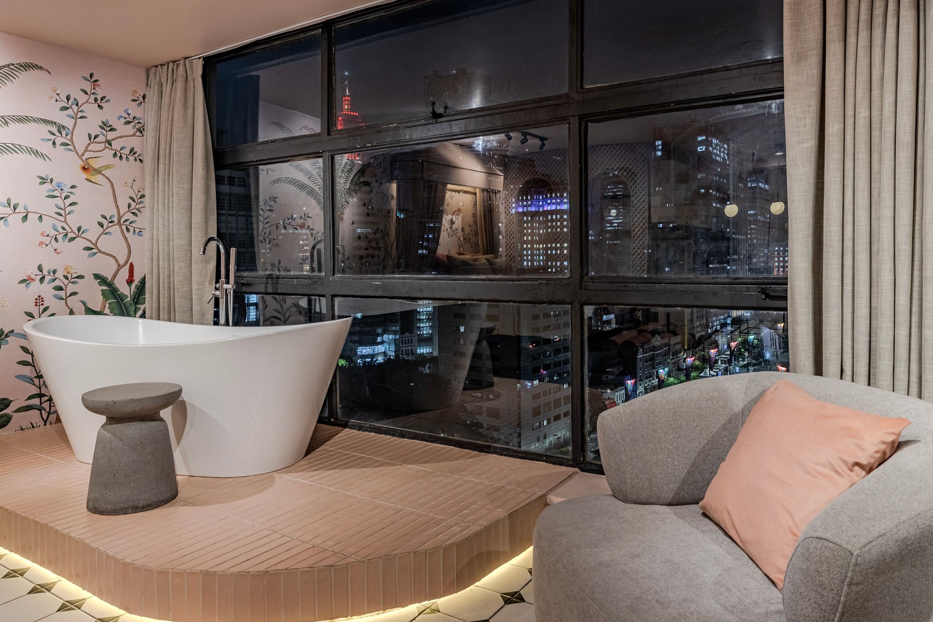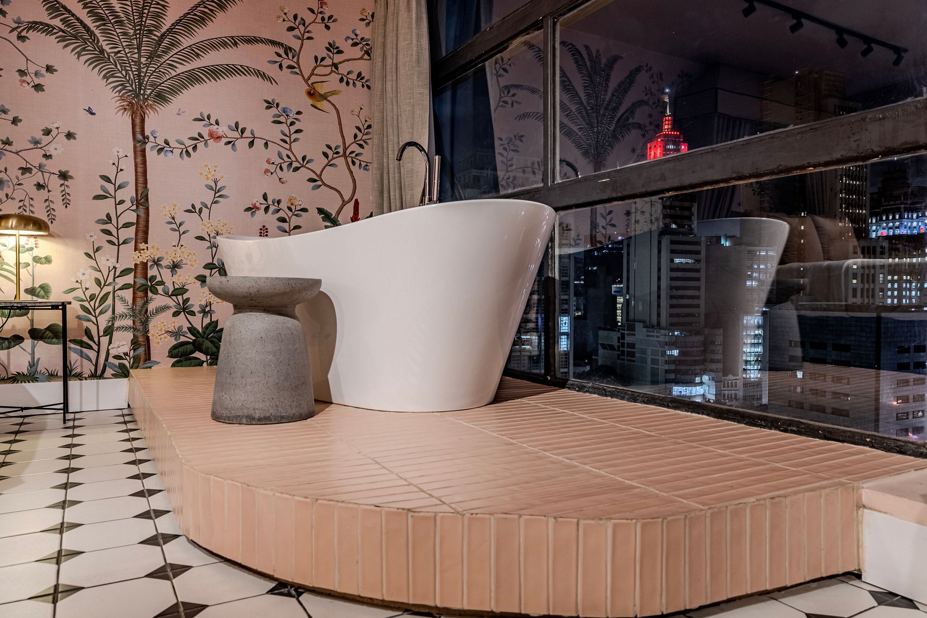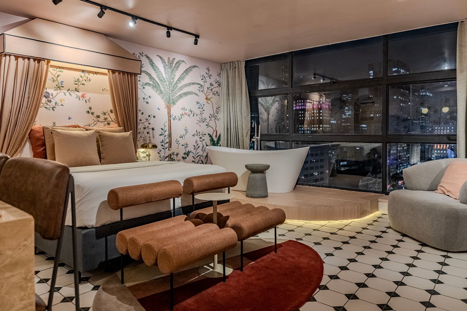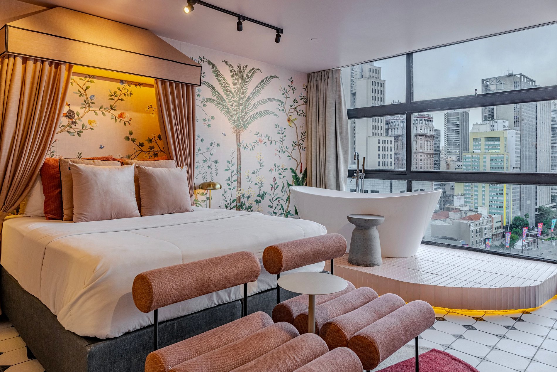 Cada cantinho do apartamento é adornado com toques de glamour, desde luminárias elegantes até acessórios decorativos inspirados no mundo da moda. Desfrute do quarto com cama queen super confortável e roupas de cama finas, garantindo uma noite de sono revigorante.