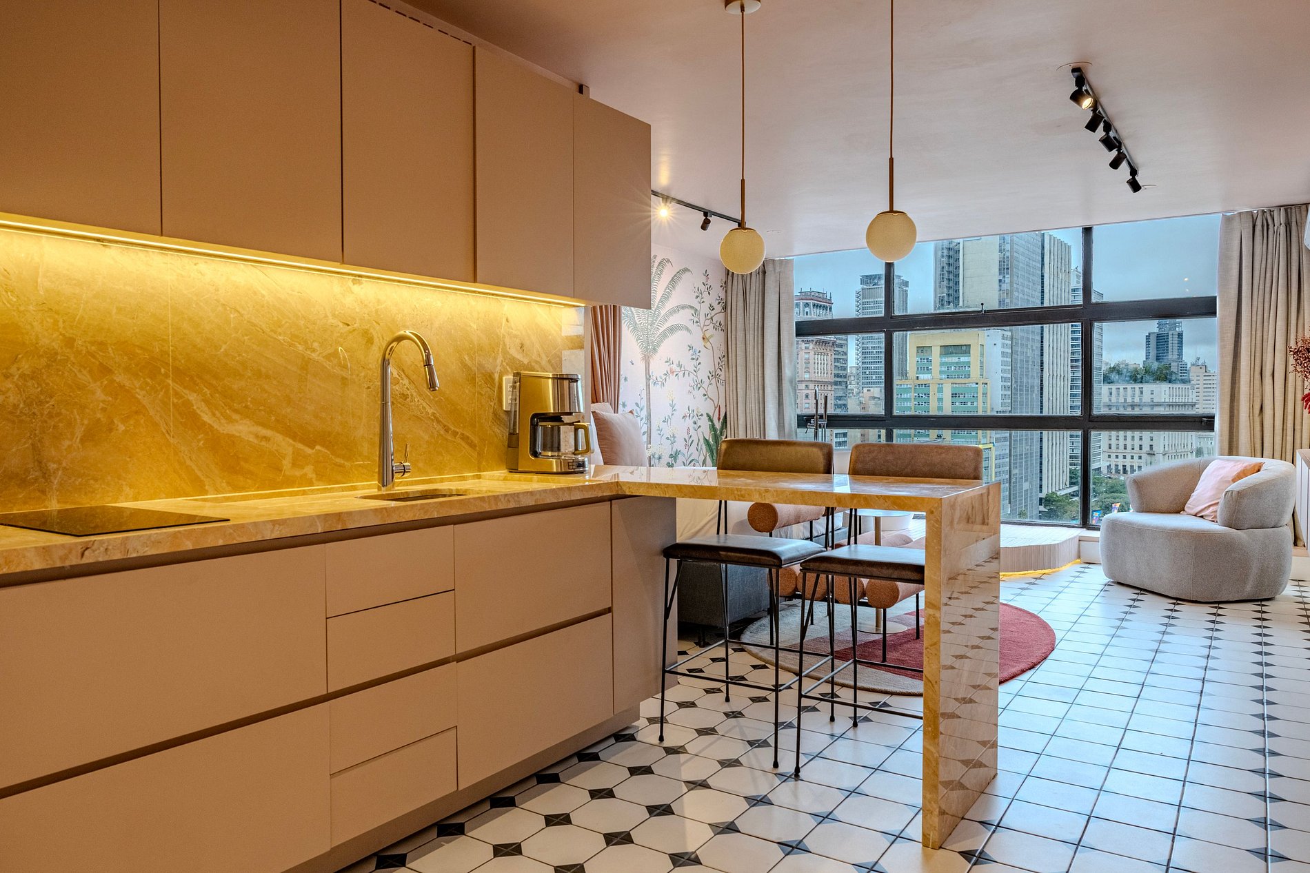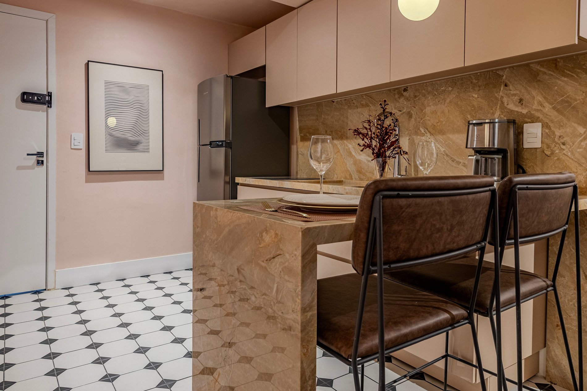 Um espaço acolhedor e elegante, ideal para relaxar após um dia explorando a cidade ou para uma noite de entretenimento com amigos. O espaço conta com cozinha completa, prepare suas refeições em uma cozinha equipada com utensílios de alta qualidade e eletrodomésticos modernos, cercada por um ambiente que exala sofisticação.