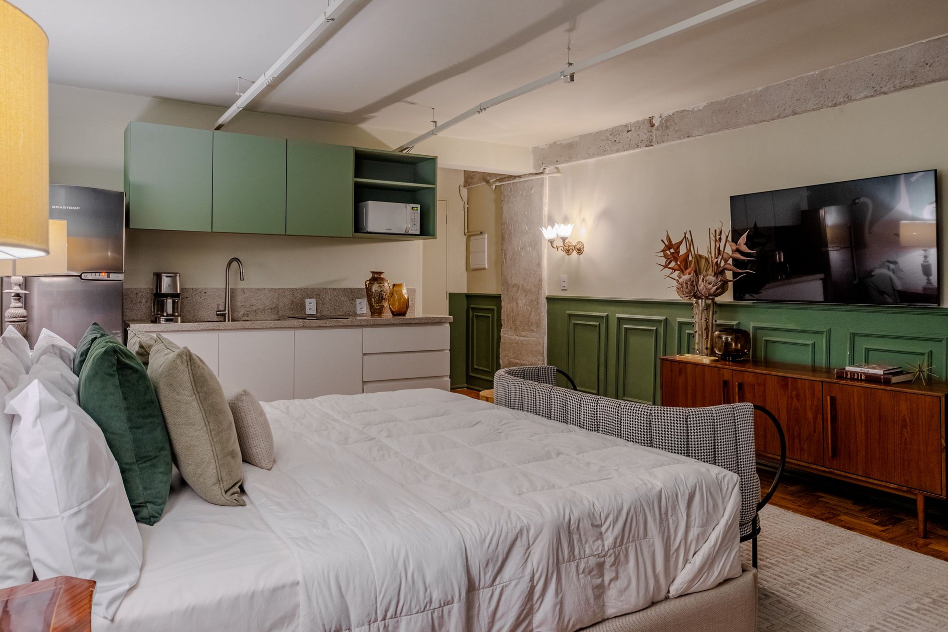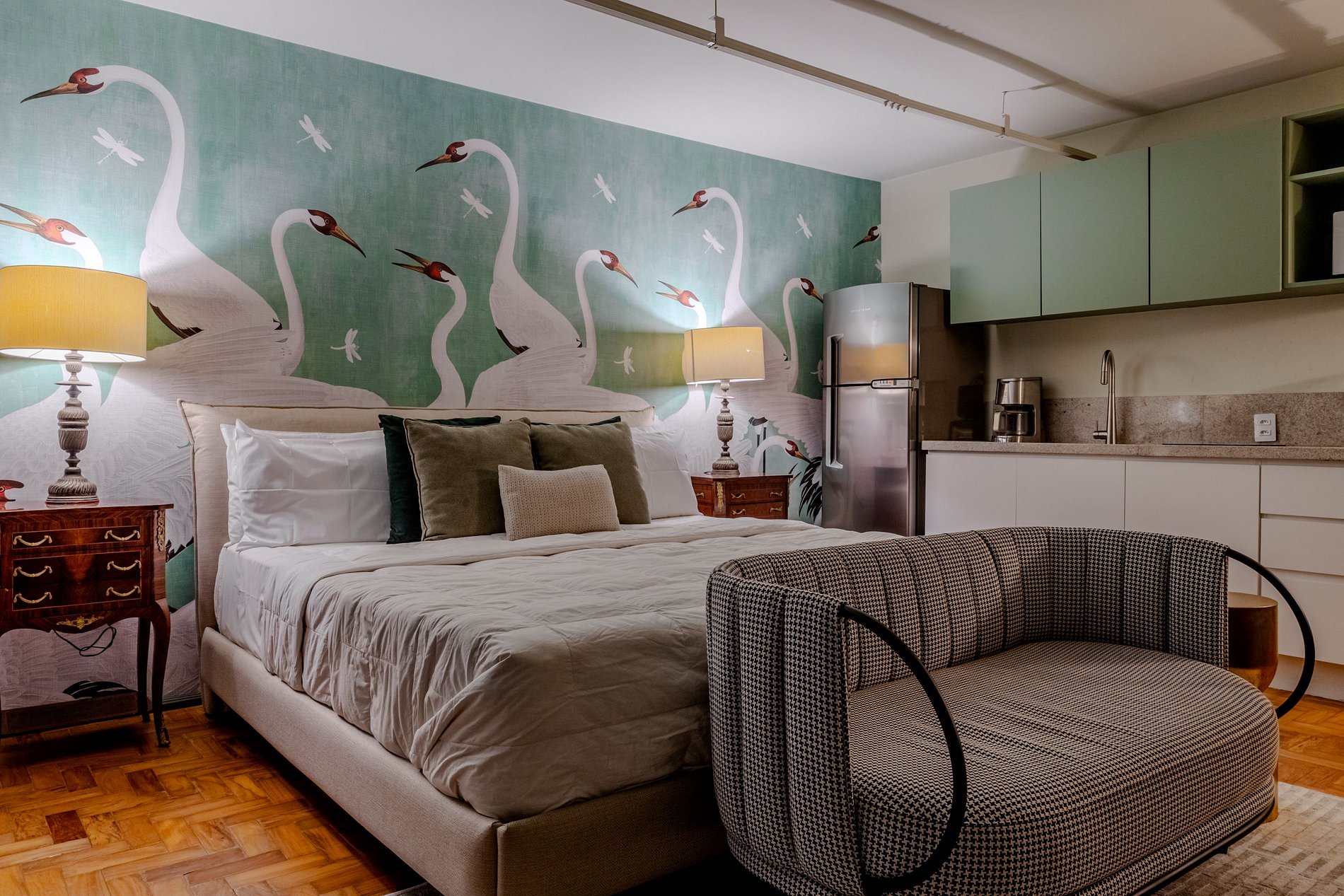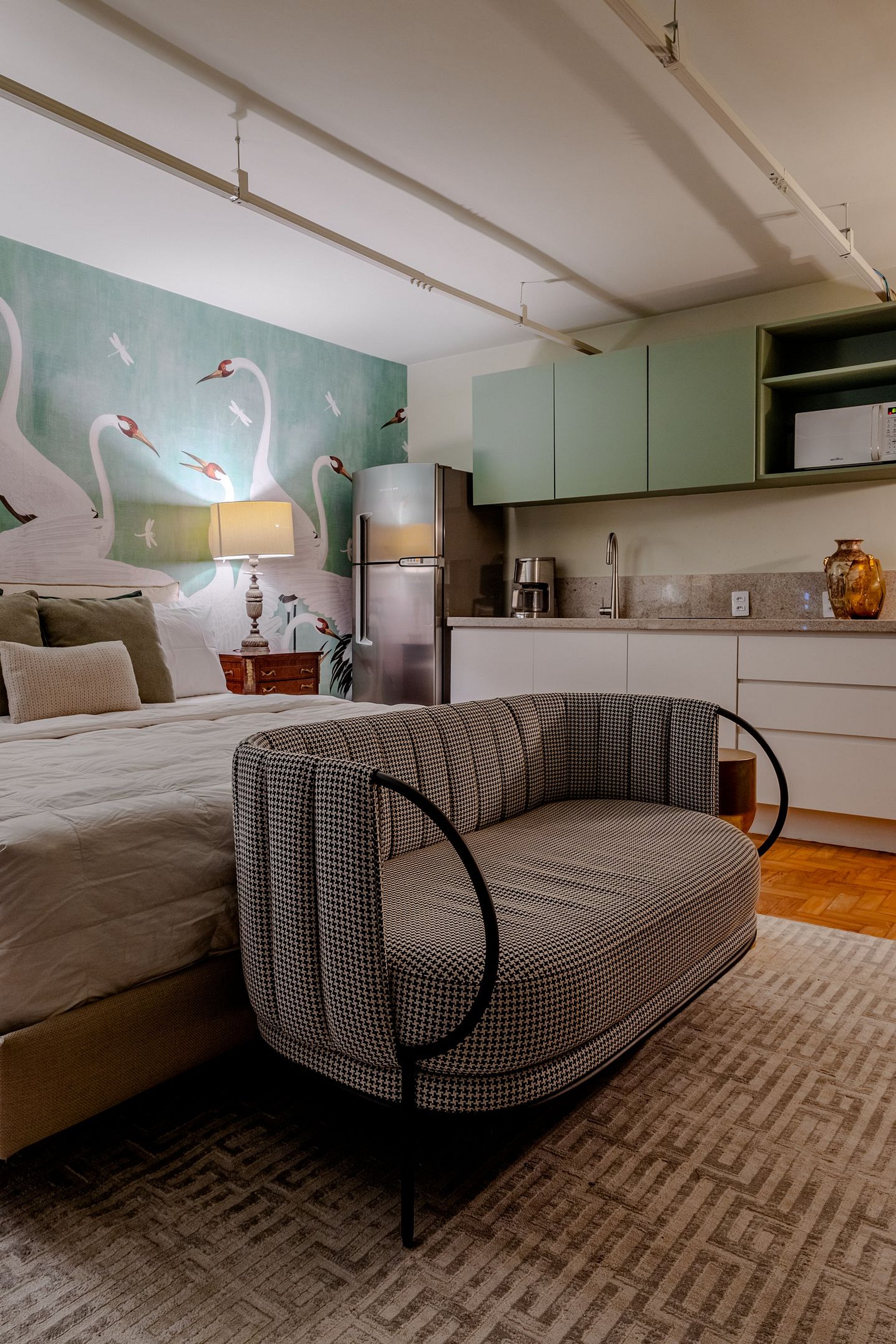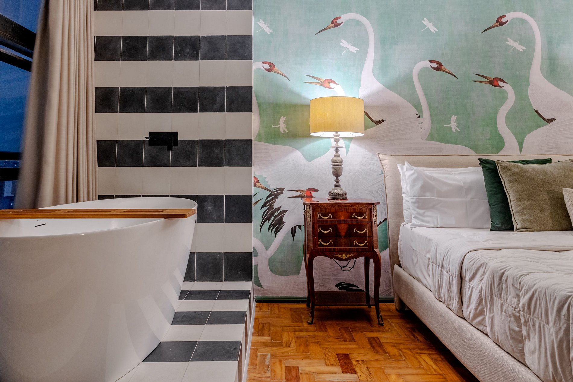 Cada detalhe foi pensado para garantir que sua estadia seja inesquecível, desde suas cores e elementos até a iluminação suave, criando um ambiente tranquilo e sofisticado. Ideal para casais, viajantes em busca de algo diferente ou até mesmo quem deseja um refúgio urbano com muito charme e personalidade.
