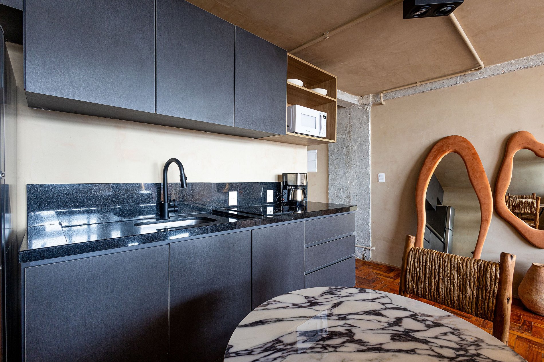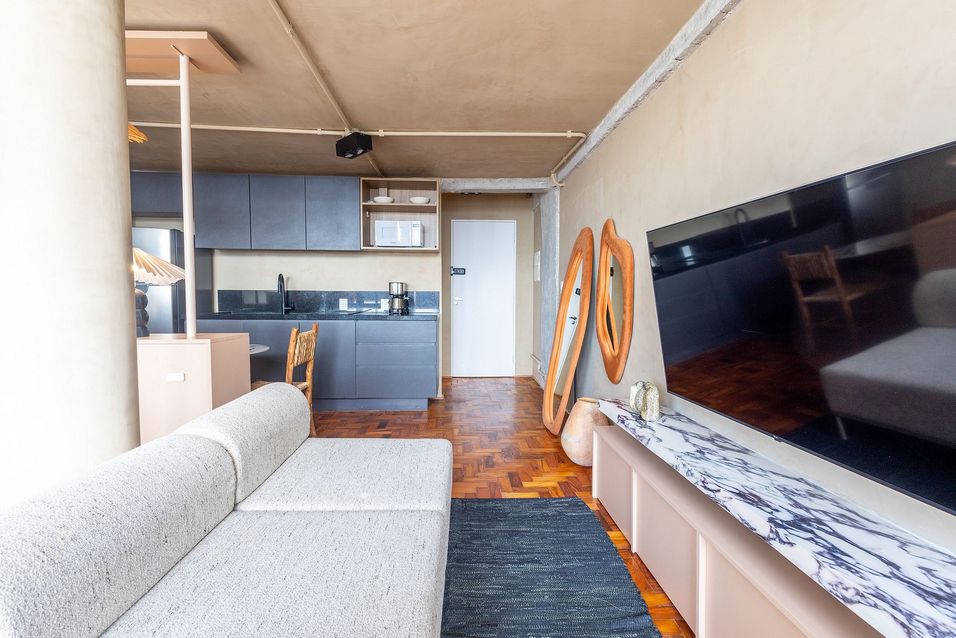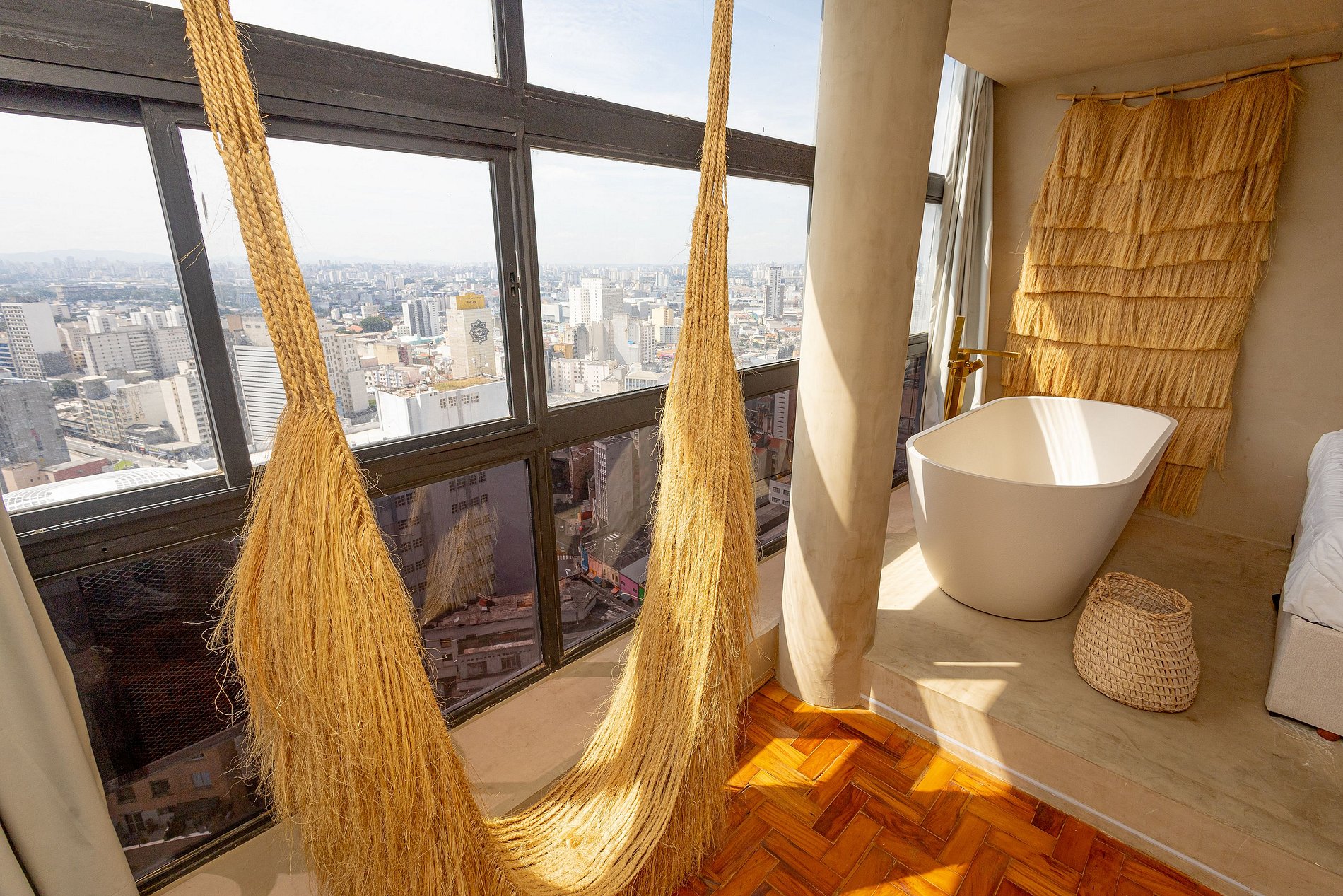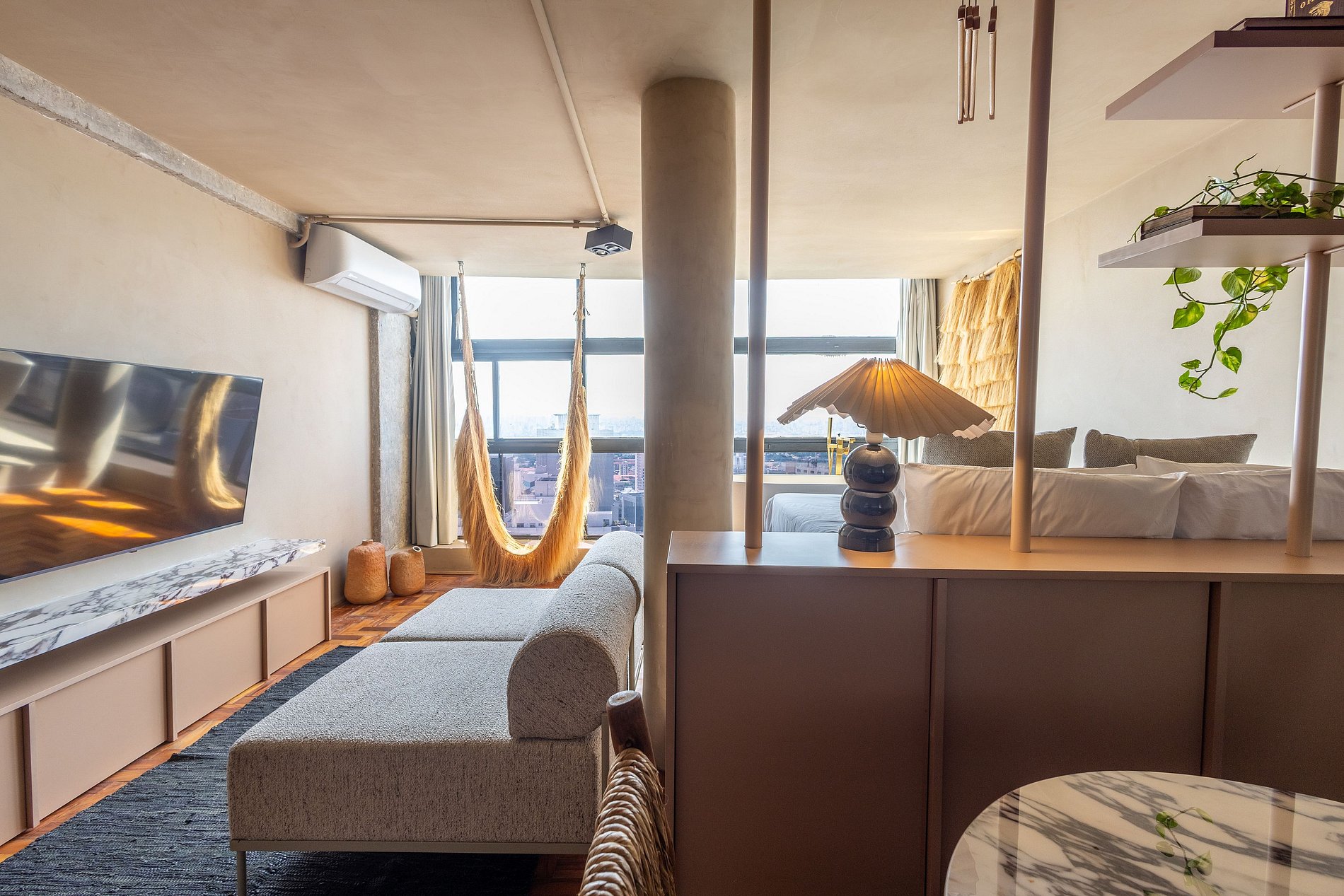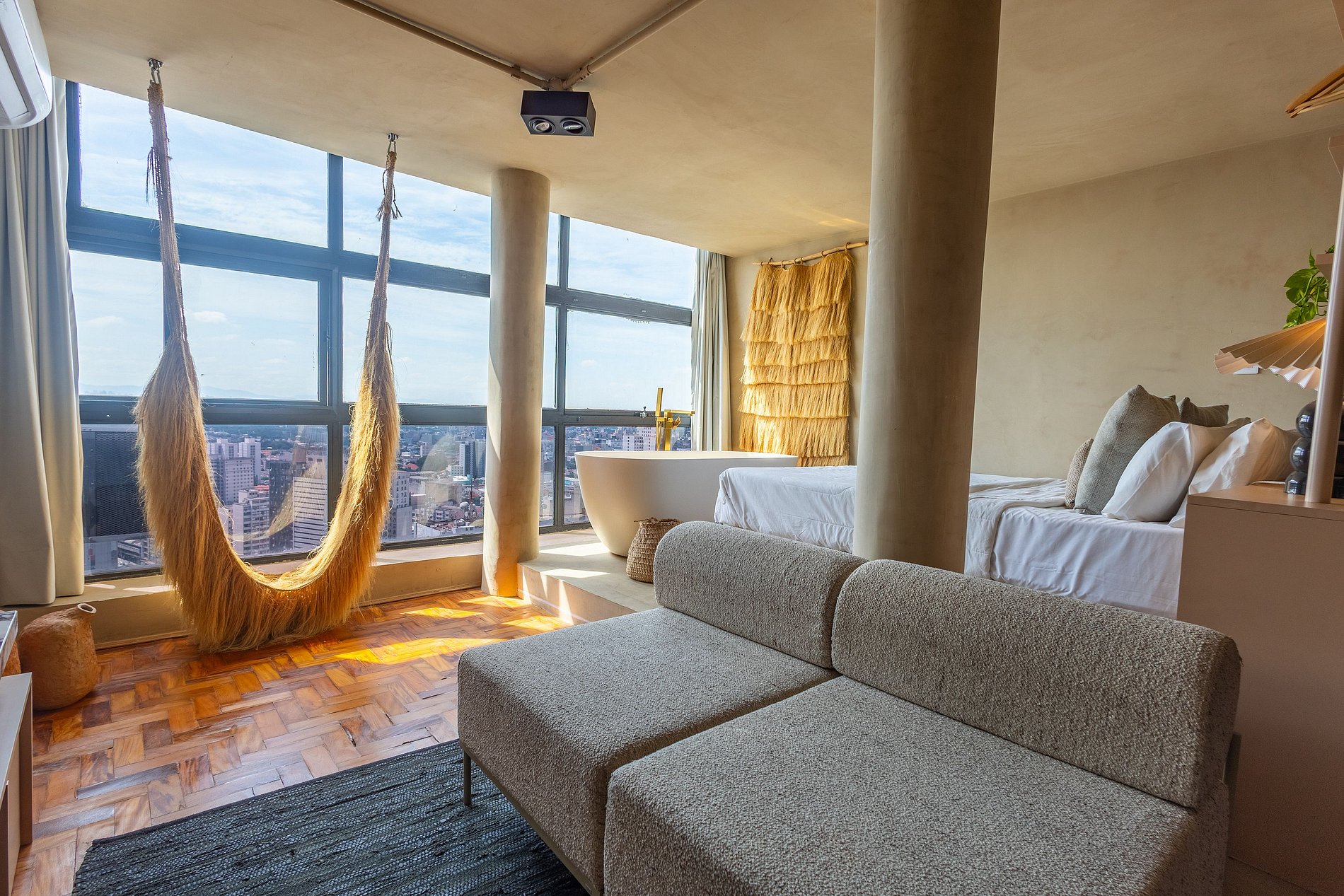 Descubra o charme do Saara Studio, um refúgio sofisticado no 37º andar do emblemático Mirante do Vale. Mergulhe em uma experiência única ao relaxar em uma banheira de design orgânico, posicionada ao lado de uma imensa janela com vista inesquecível para o Viaduto Santa Ifigênia. Inspirado pelos tons e texturas das paisagens desérticas, o estúdio combina arquitetura contemporânea e conforto em cada detalhe — criando uma atmosfera acolhedora, serena e visualmente deslumbrante.