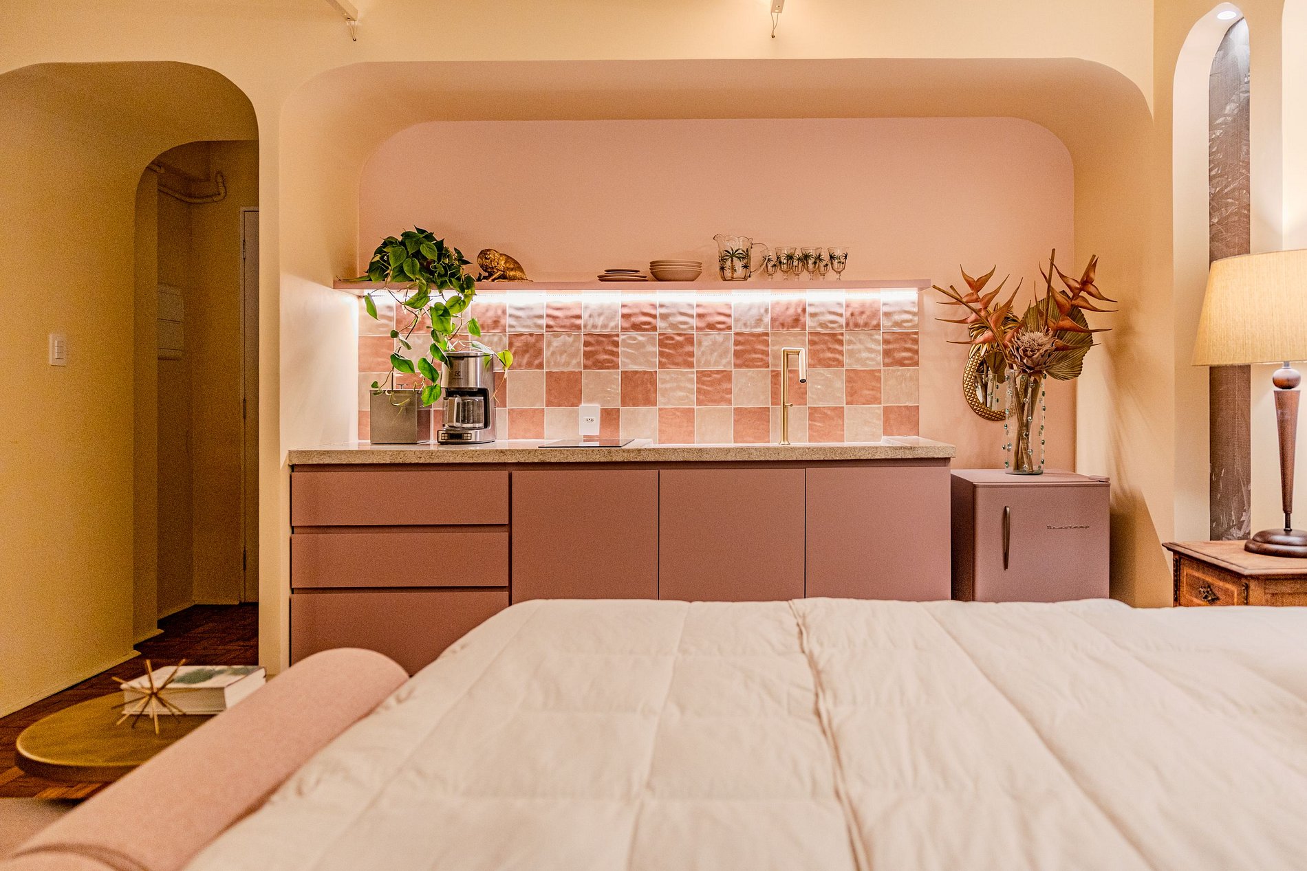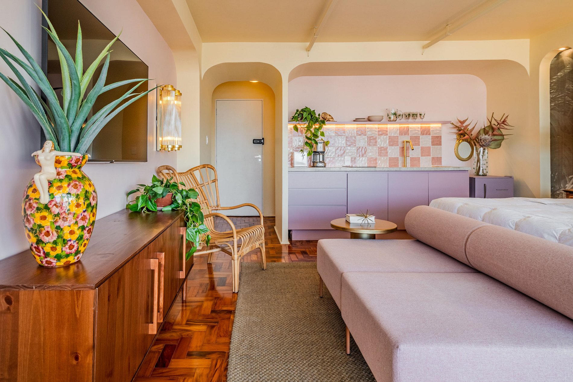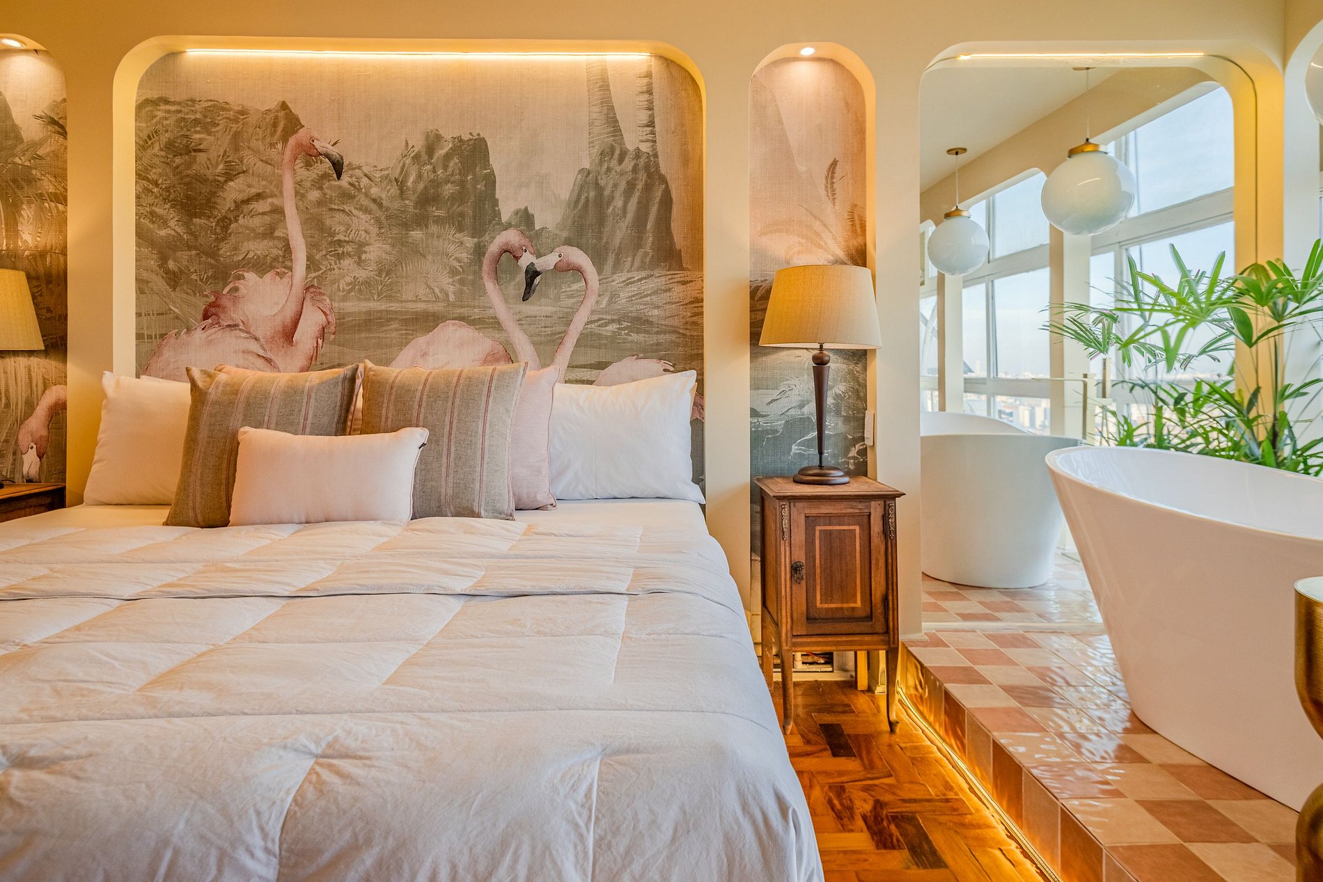 Cada detalhe foi pensado para garantir que sua estadia seja inesquecível, desde suas cores e elementos até a iluminação suave, criando um ambiente tranquilo e sofisticado. Ideal para casais, viajantes em busca de algo diferente ou até mesmo quem deseja um refúgio urbano com muito charme e personalidade.