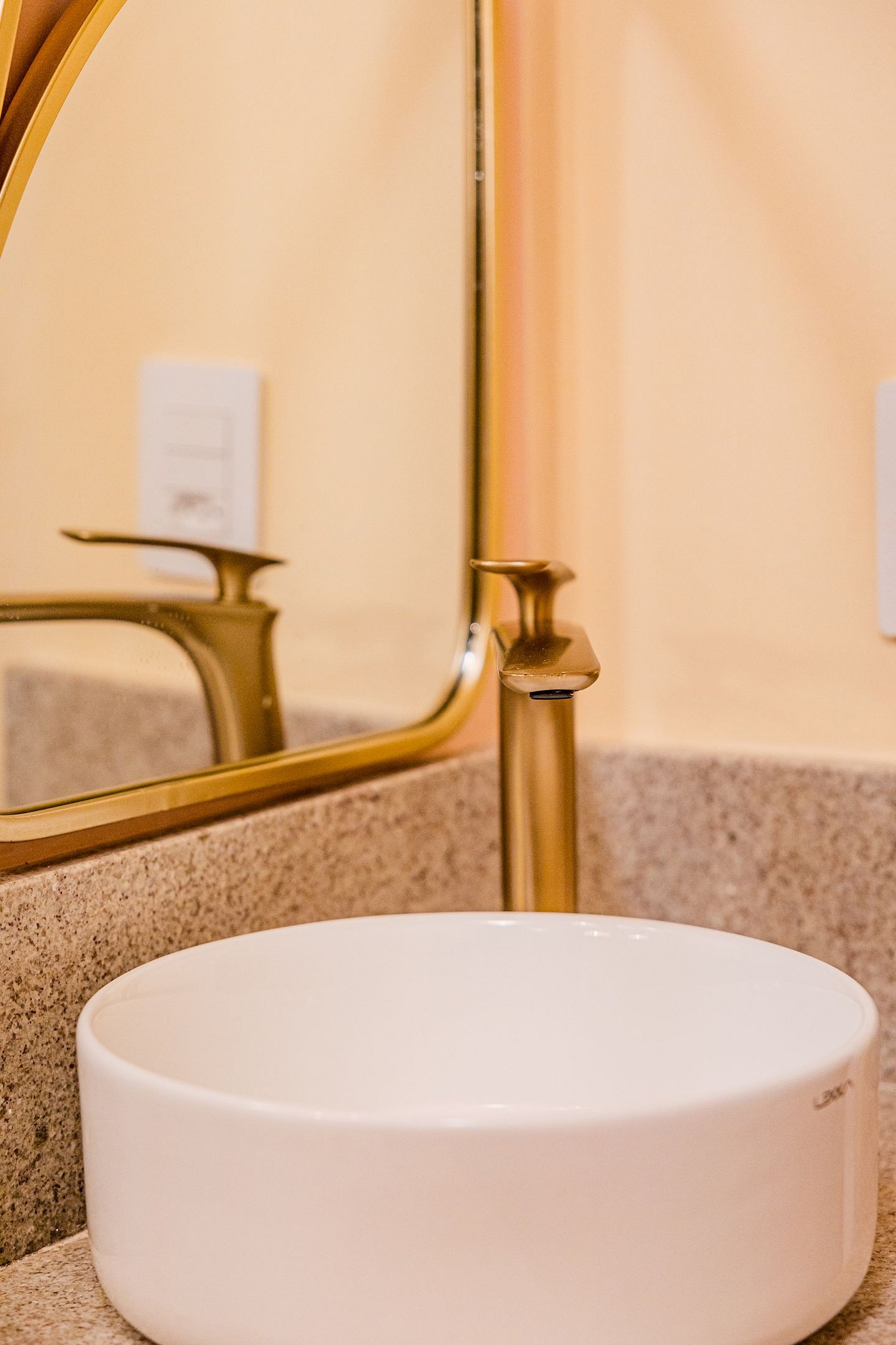 O grande diferencial deste espaço é a sua banheira estrategicamente posicionada próxima à janela, permitindo que você relaxe enquanto aprecia a imensidão da cidade. As persianas automatizadas garantem total controle da luz natural, criando o clima ideal para qualquer momento do dia.