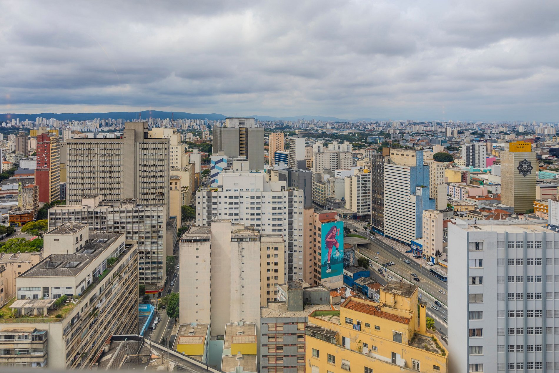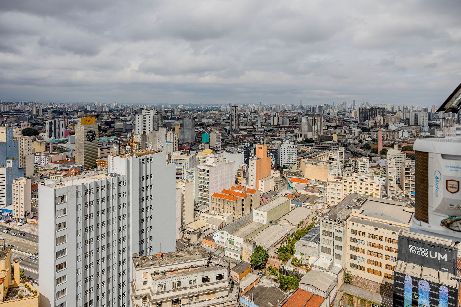 As amplas janelas enquadram um dos visuais mais impressionantes da cidade — é possível avistar toda a cidade e, em dias claros, até a Serra da Cantareira.