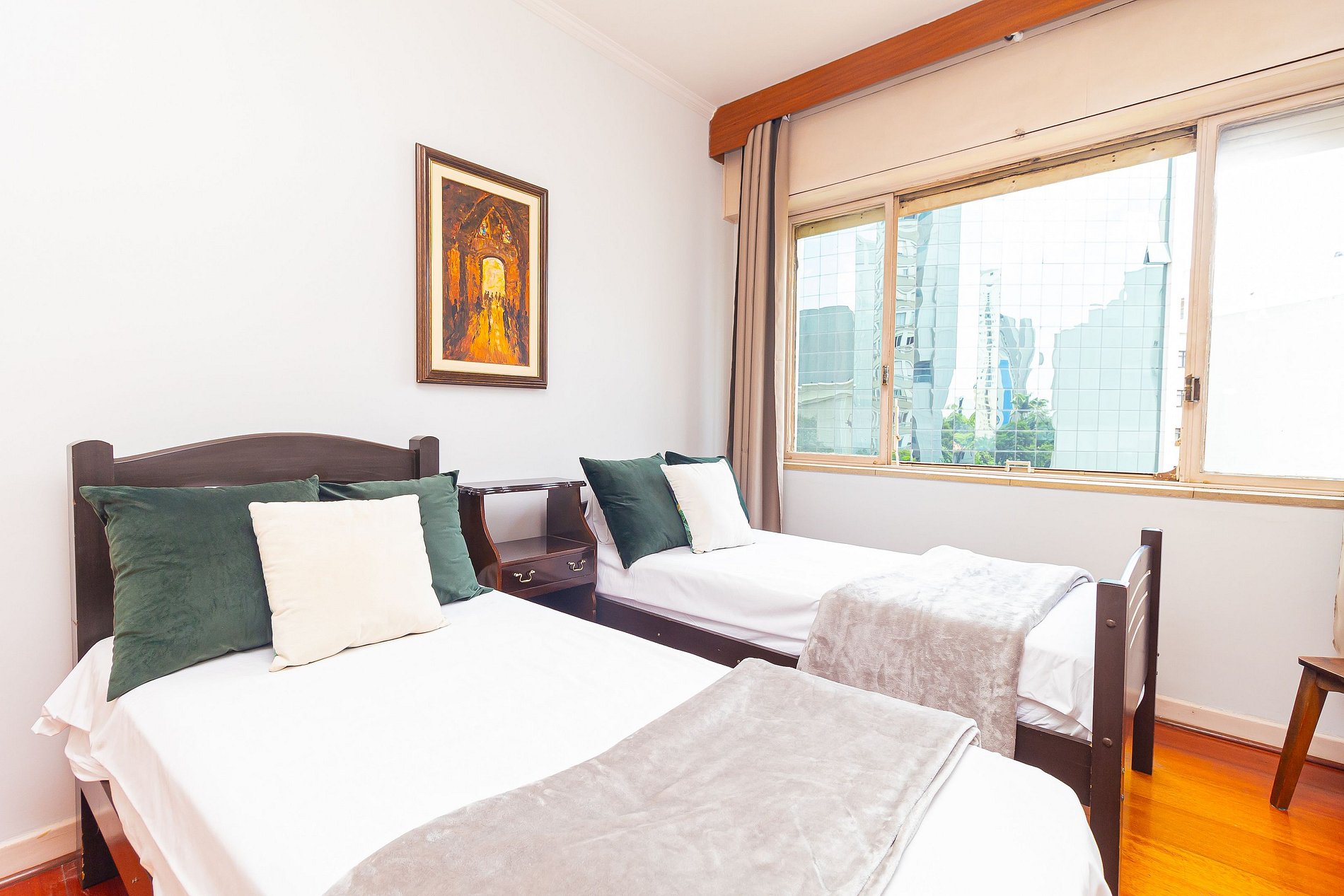 A localização desse apartamento é um capitulo a parte, está centralizado na Paulista, em um âmbito com milhares de opções, o ambiente é completo e amplo, sendo perfeito pra uma estadia temporária longa ou breve, acomodando uma família inteira, contando com duas camas de casal e uma de solteiro.