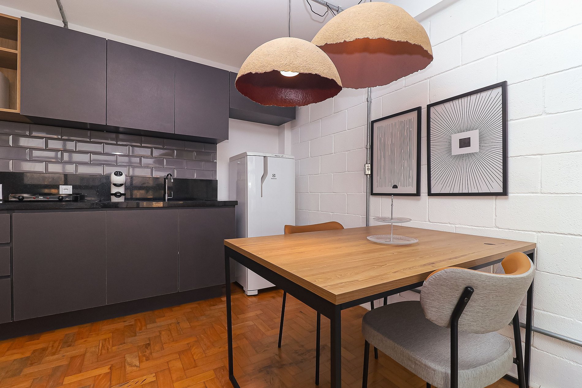 Mergulhe no design único e sofisticado do nosso apartamento, que combina elementos industriais com conforto moderno. Paredes de tijolo exposto, tubulações visíveis e detalhes em metal criam uma atmosfera vibrante e contemporânea.