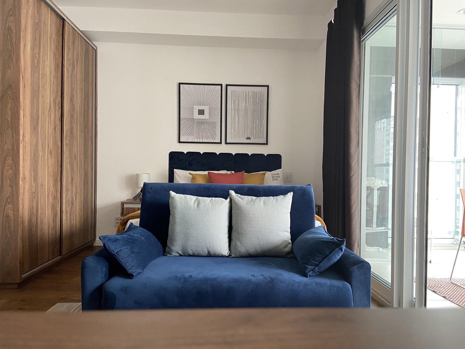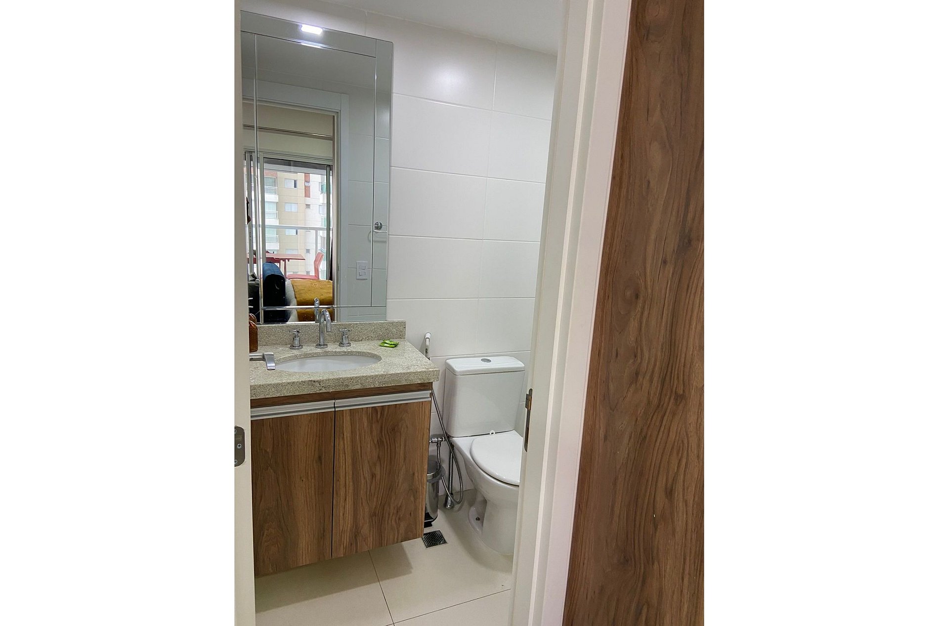 O apartamento conta com fechamento de vidros na varanda e também porta de isolamento no quarto, minimizando ao máximo o potencial barulho.